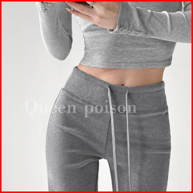 Riod Aoer 2025 Baru Olahraga Kasual Lebar Kaki Tinggi Pinggang Serut Celana Wanita - Abu-abu Muda-abu-abu