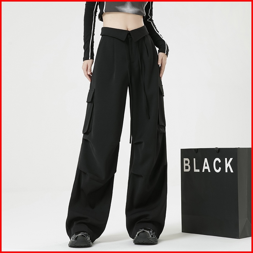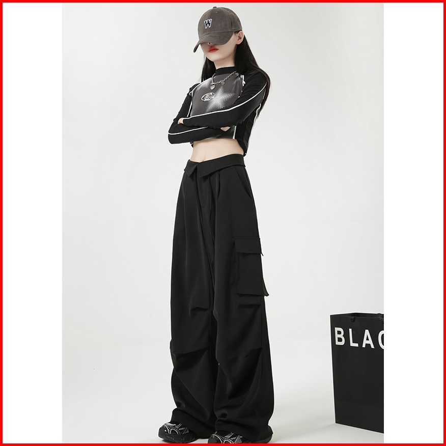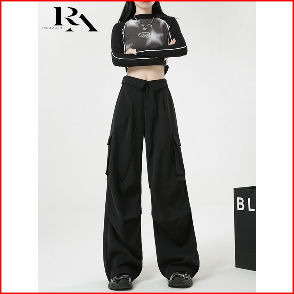 Riod Aoer Celana Panjang Kasual Khaki Amerika Untuk Wanita Musim Panas Pinggang Tinggi Longgar Pelangsing Bentuk Buah Pi
