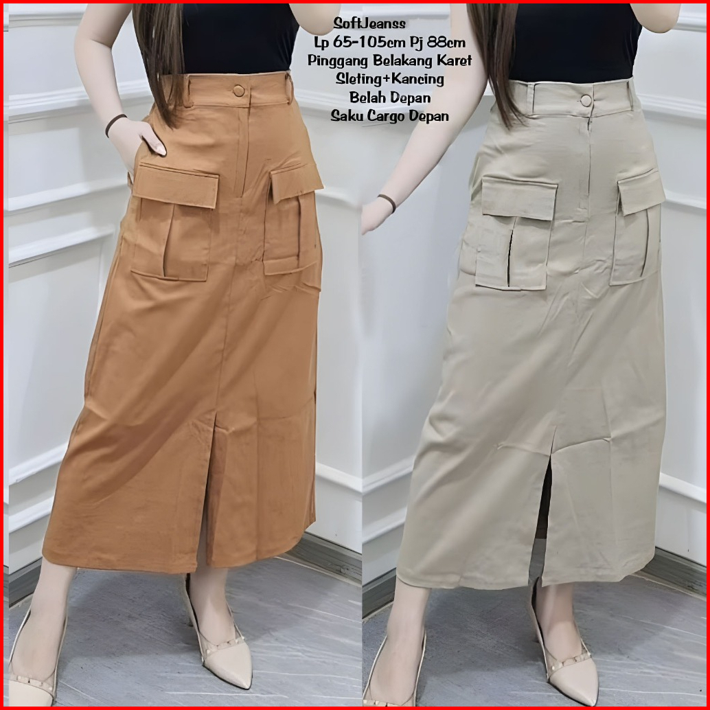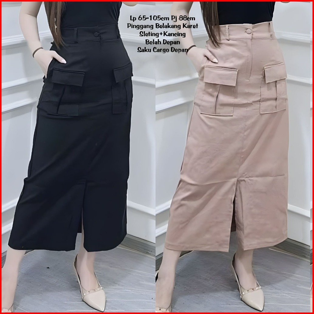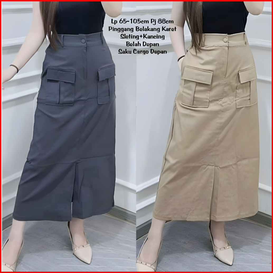 Emilia Rok Twill Cargo Wanita Belah Depan Saku