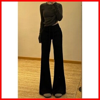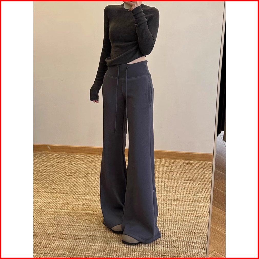 Riod Aoer Celana Olahraga Wanita Sedikit Melebar Musim Gugur Dan Musim Dingin Pinggang Tinggi Melangsingkan Longgar Tali