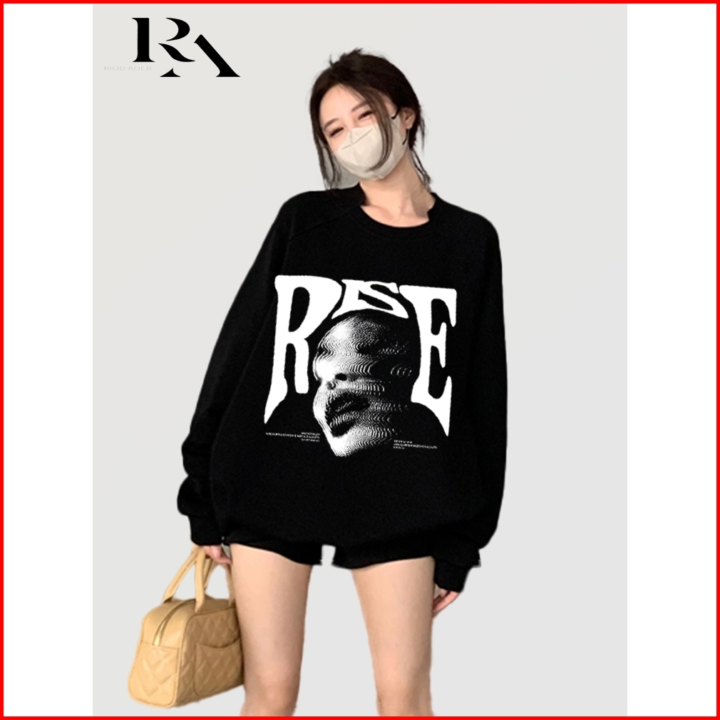 Riod Aoer Cetakan Retro Kaus Oblong Leher Bulat Hitam Motif Retro Amerika Atasan Kaus Oblong Longgar Kaus Oblong Longgar