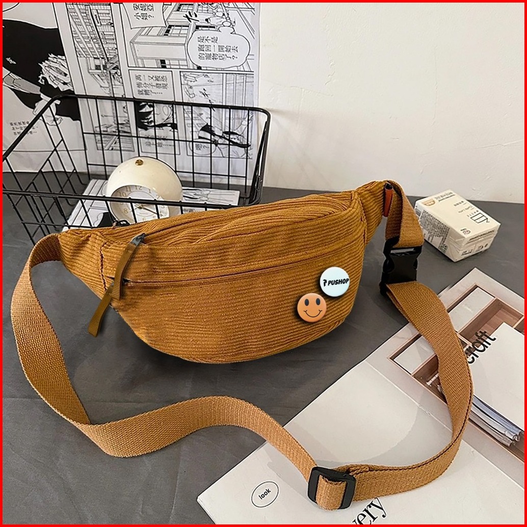Pushop Tas Selempang Pria Corduroy Rowhan - Waistbag Corduroy Cowok Tas Pinggang Uniseks Kasual Polos Free 2 Pin Bros Te