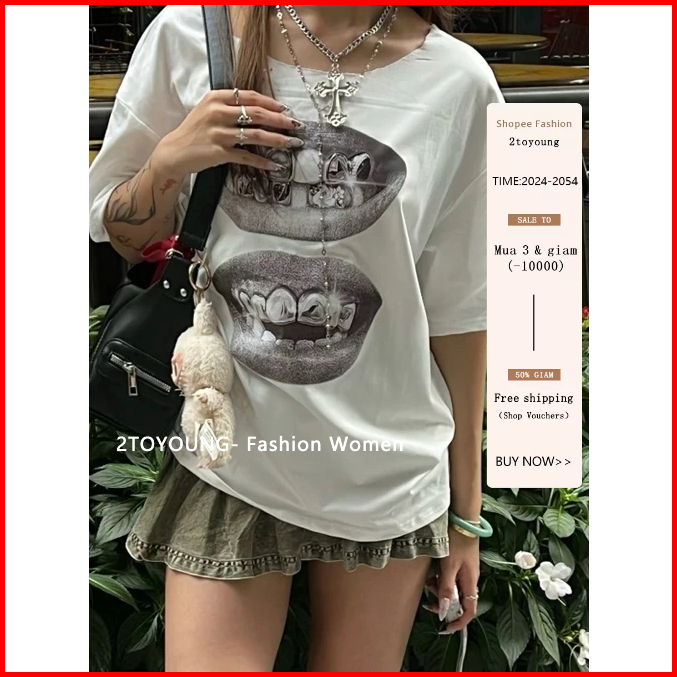 2toyoung Mulut Tshirt Y2k Asymmetrical Offshoulder Top Streetwear Stockholm Vintage Retro Aesthetic