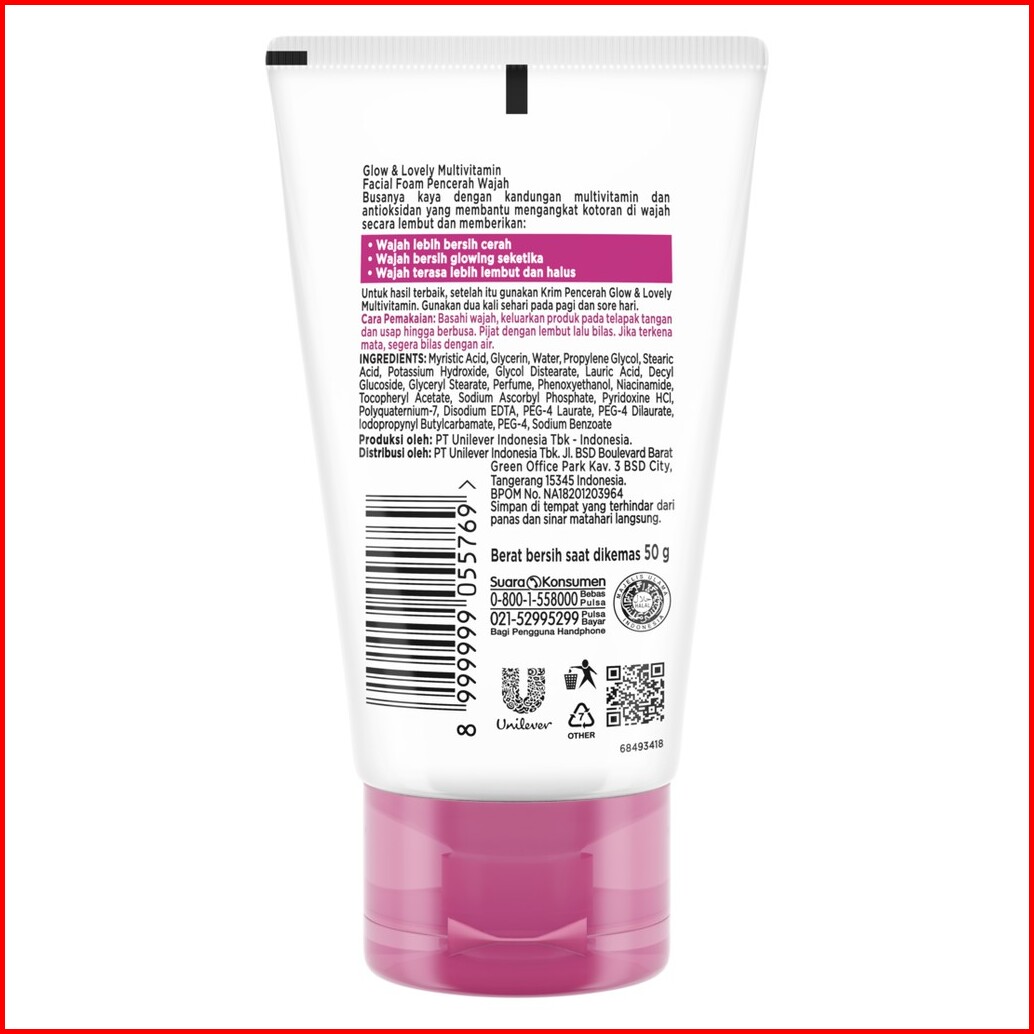 Glow Lovely Dermaglow Multivitamin Facial Foam 50gr Wajah Bersih Glowing Cerah Seketika