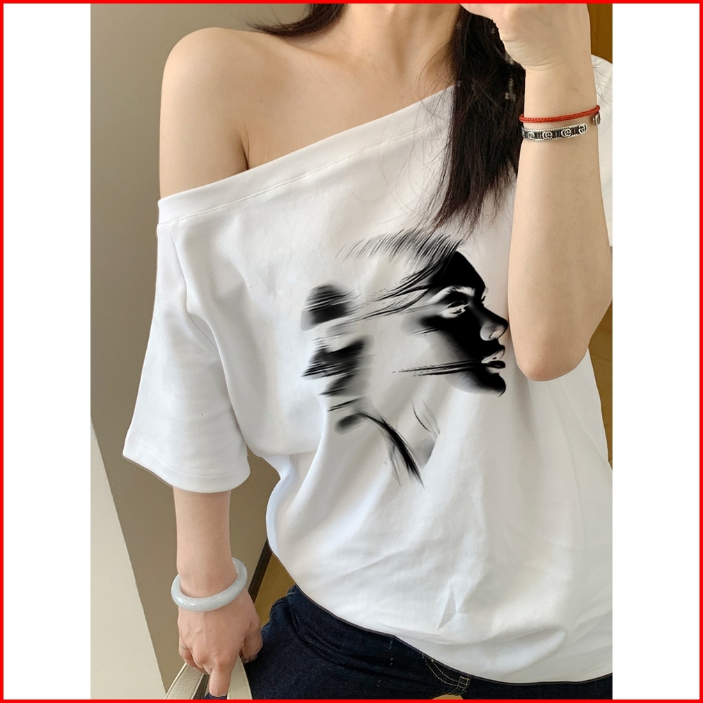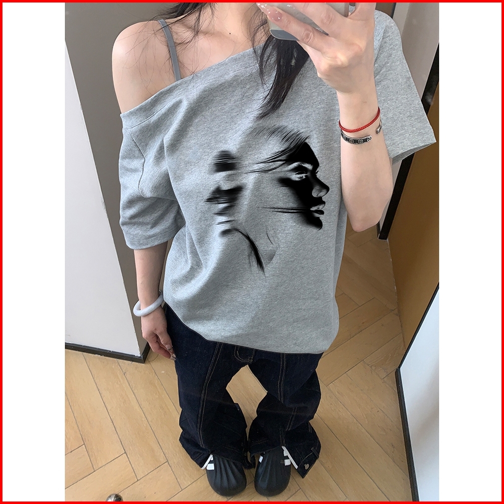 2toyoung Hitam Pola Super Keren Gaya Jalanan Amerika Tshirt Y2k Asymmetrical Offshoulder Top Ahs Streetwear Stockholm Vi