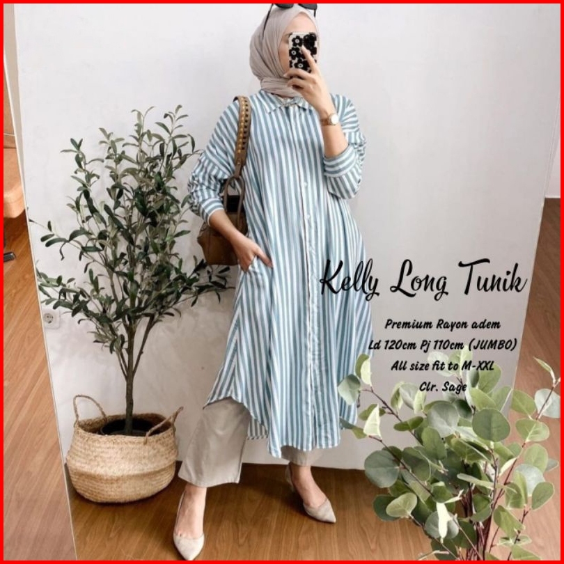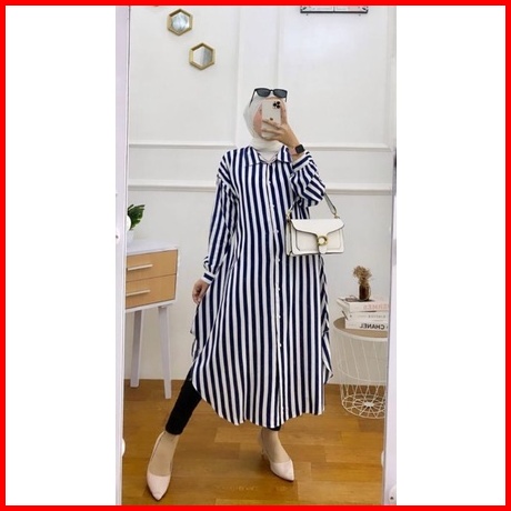 Nanda Long Tunik Salur Tunik Wanita Motif Garis