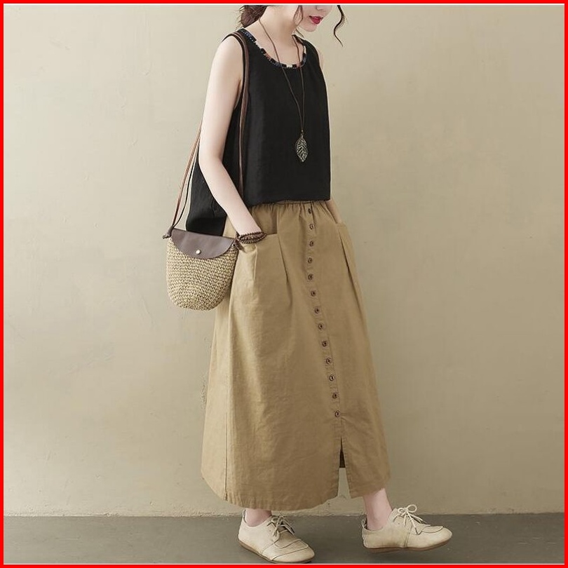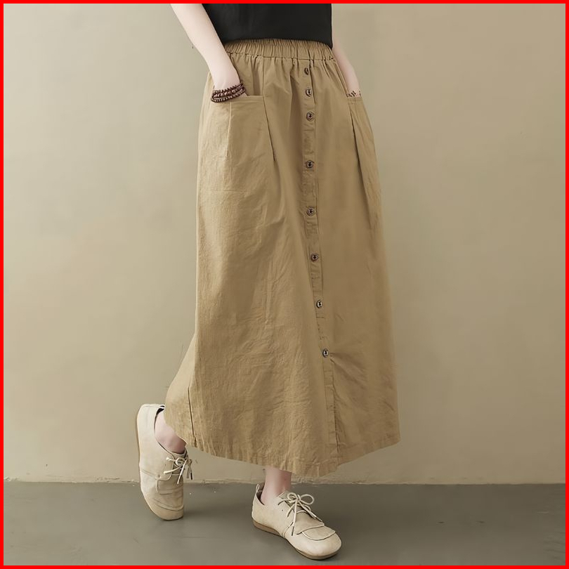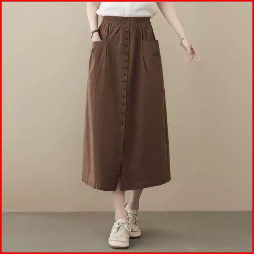 Amora Skirt Korean Style Devan Rok Linen Full Kancing Depan