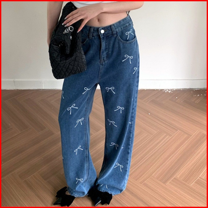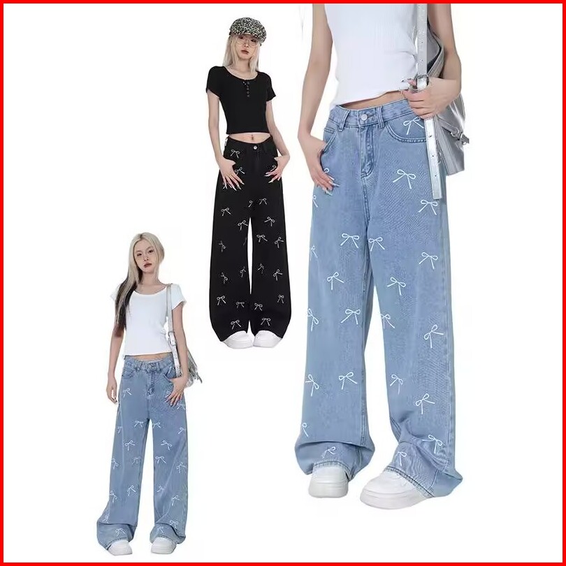 Katermen Jeans Oversize-jeans Wanita - Jeans Biru Muda - Celana Kaki Lebar Longgar Lurus Ramping