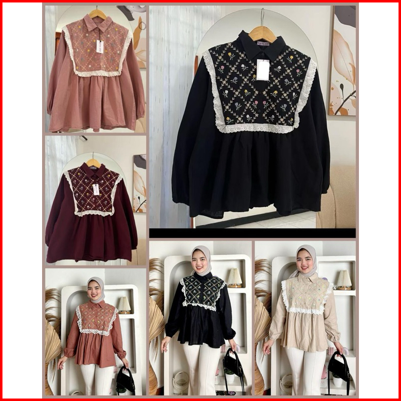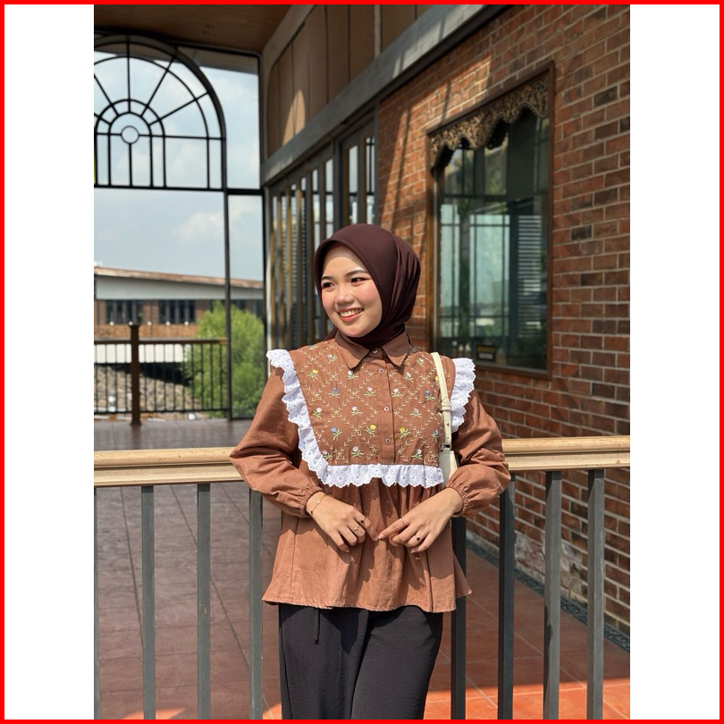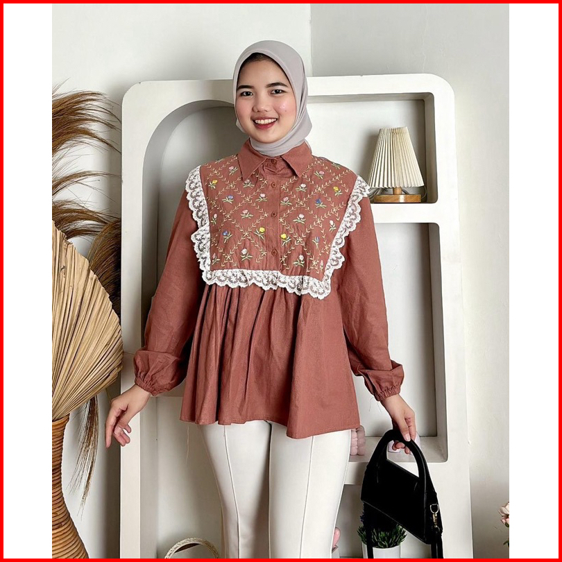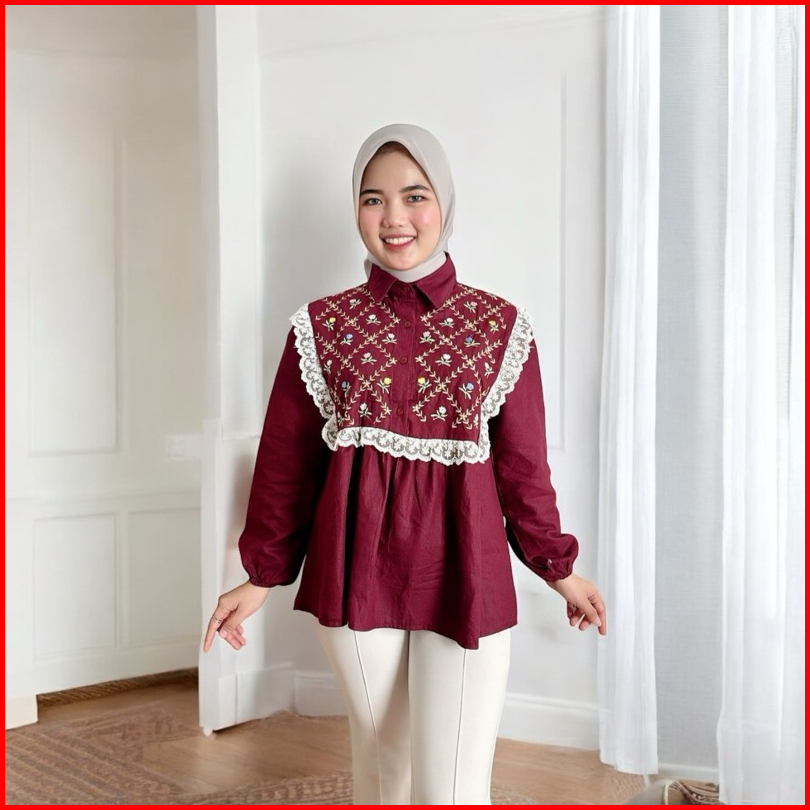 Girlfashionstory Original Ghenia Linen Embroidery Kemeja Bordir