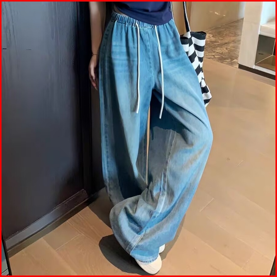 Katermen Jeans Wanita - Jeans Tali Serut - Jeans Pinggang Elastis Ukuran Besar