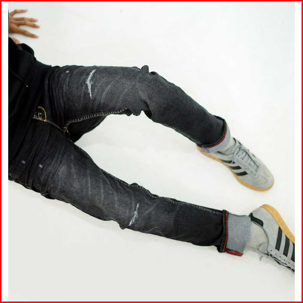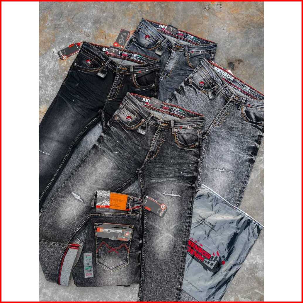 Sensorline - Black Series Ripped Denim - Jeans Selvedge Sobek Lapis Whiscer Pria Panjang