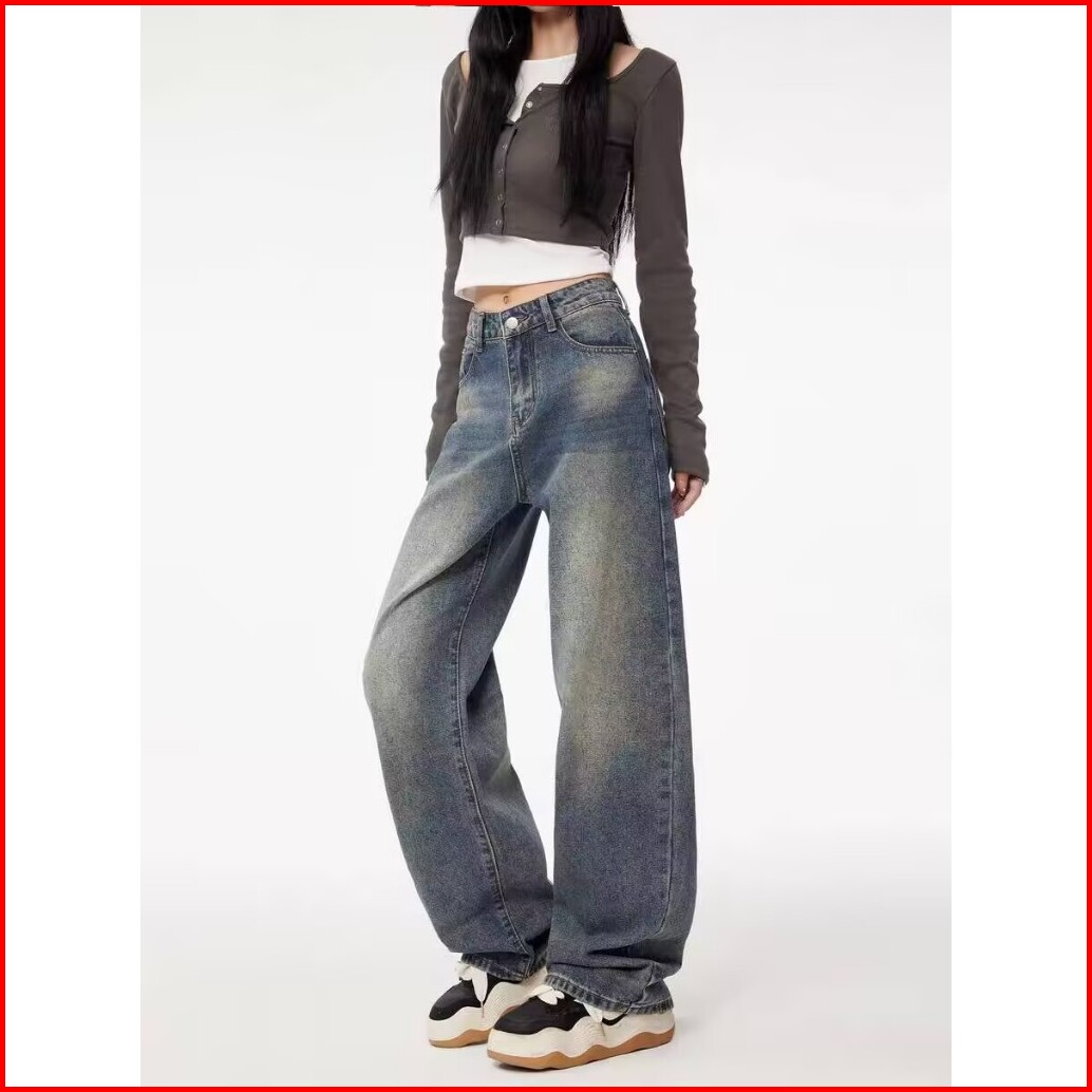 Katermen S-6xl Jeans Ukuran Besar Jeans Biru Jeans Wanita Gaya Korea Longgar Kaki Lebar Denim