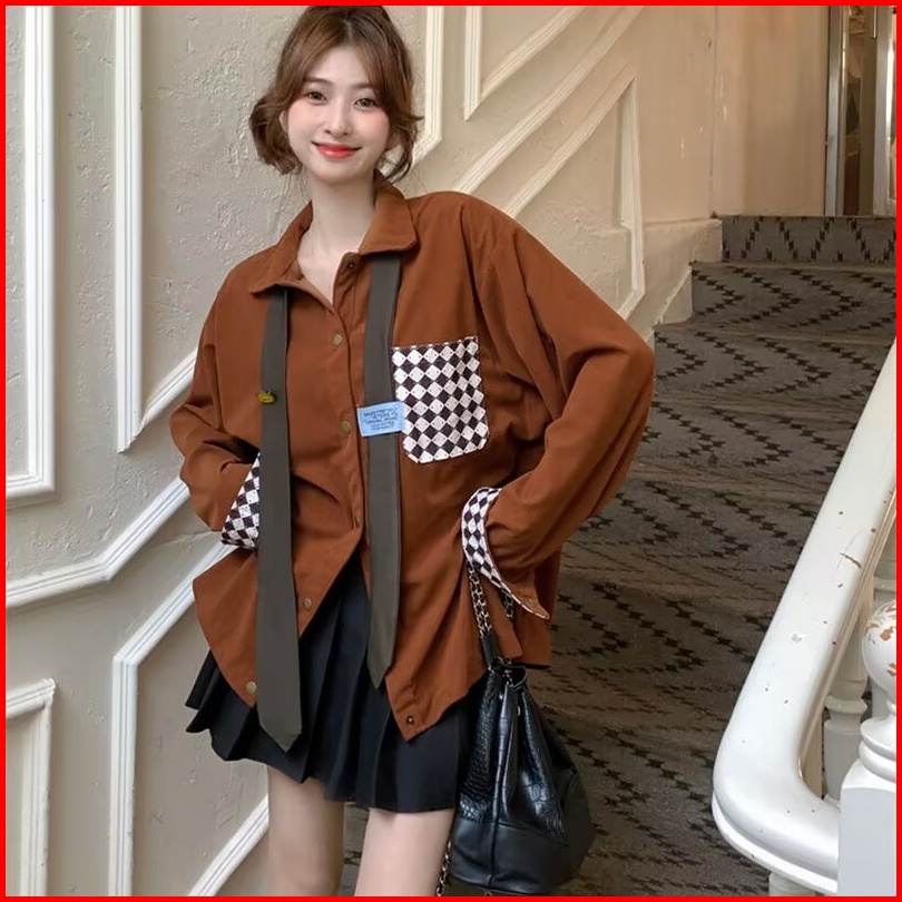 Katermen Kemeja Wanita - Kemeja Lengan Panjang Korduroi - Atasan Kemeja Longgar Wanita