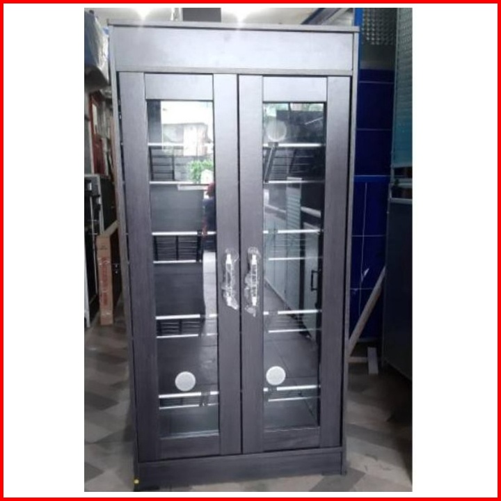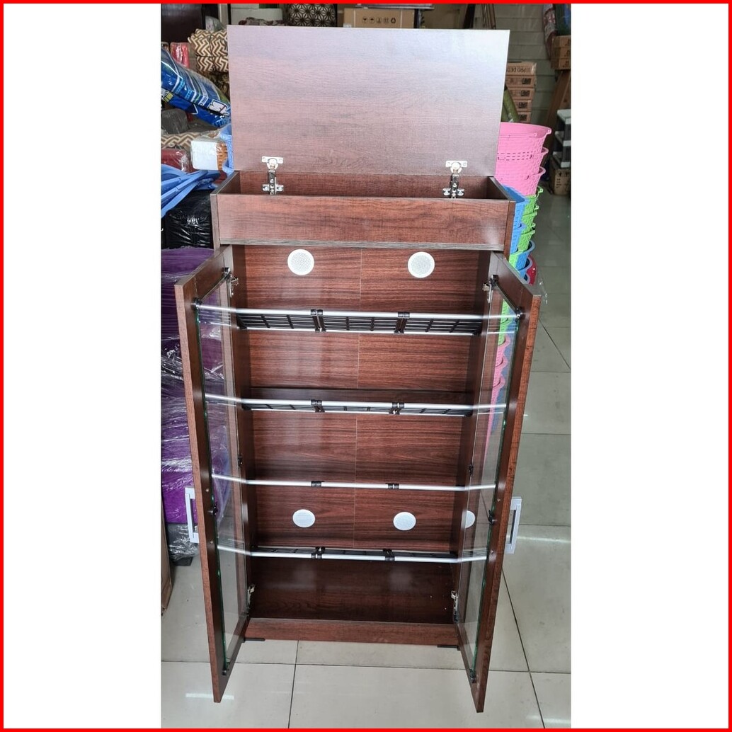 Lemari Sepatu Kayu Kaca 15 Pasang Dengan Rak Serbaguna