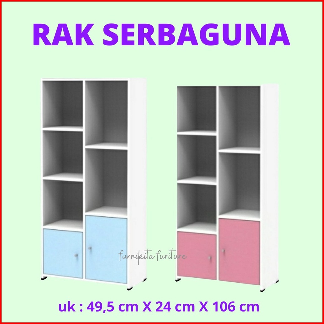 Lemari Buku Serbaguna 7 Susun 2 Pintu Minimalis Rak Kayu Serbaguna