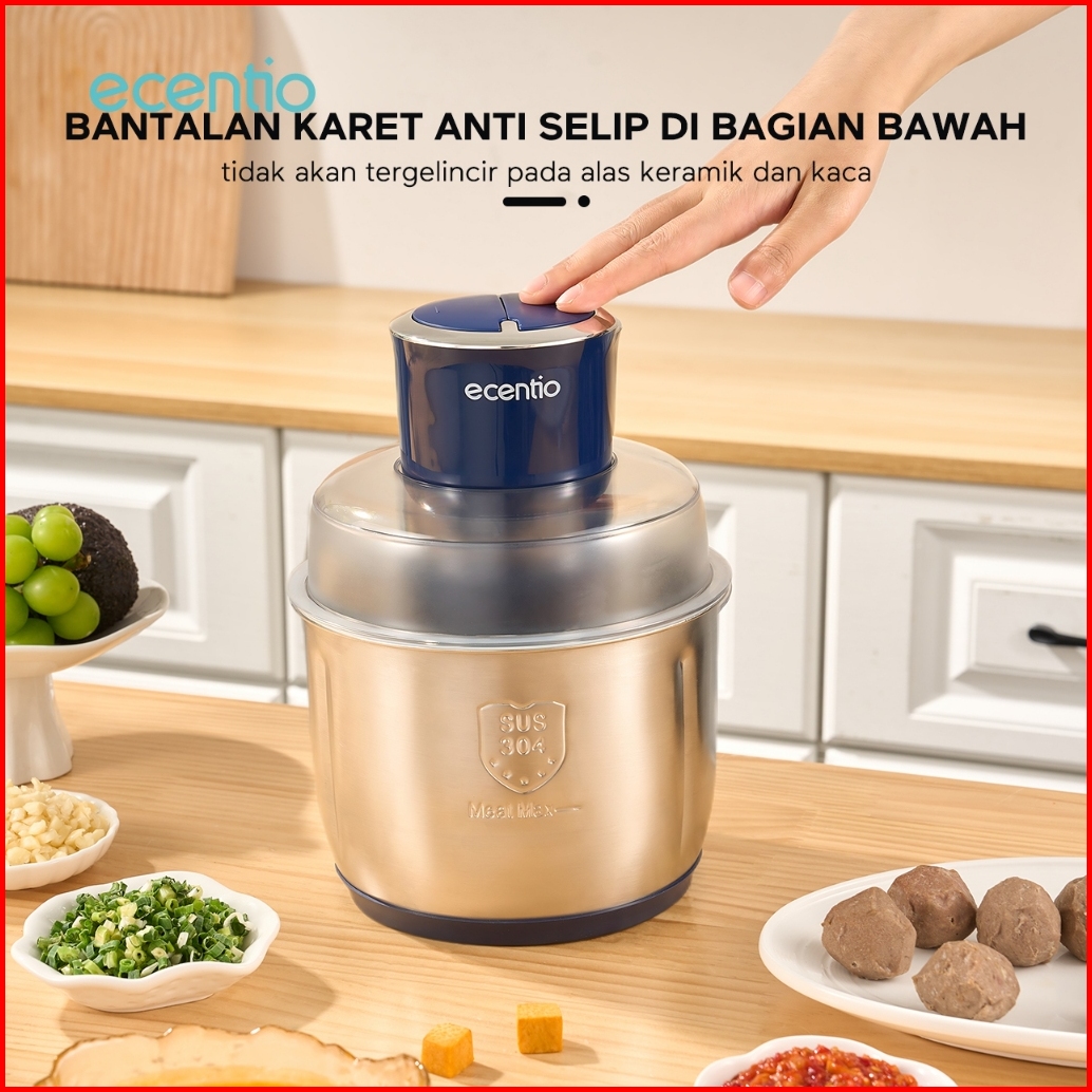Ecentio Penggiling Daging Stainless 3l Food Chopper 4 Mata Pisau Multifungsi Food Processor Daging 300w 2 Kecepatan Food