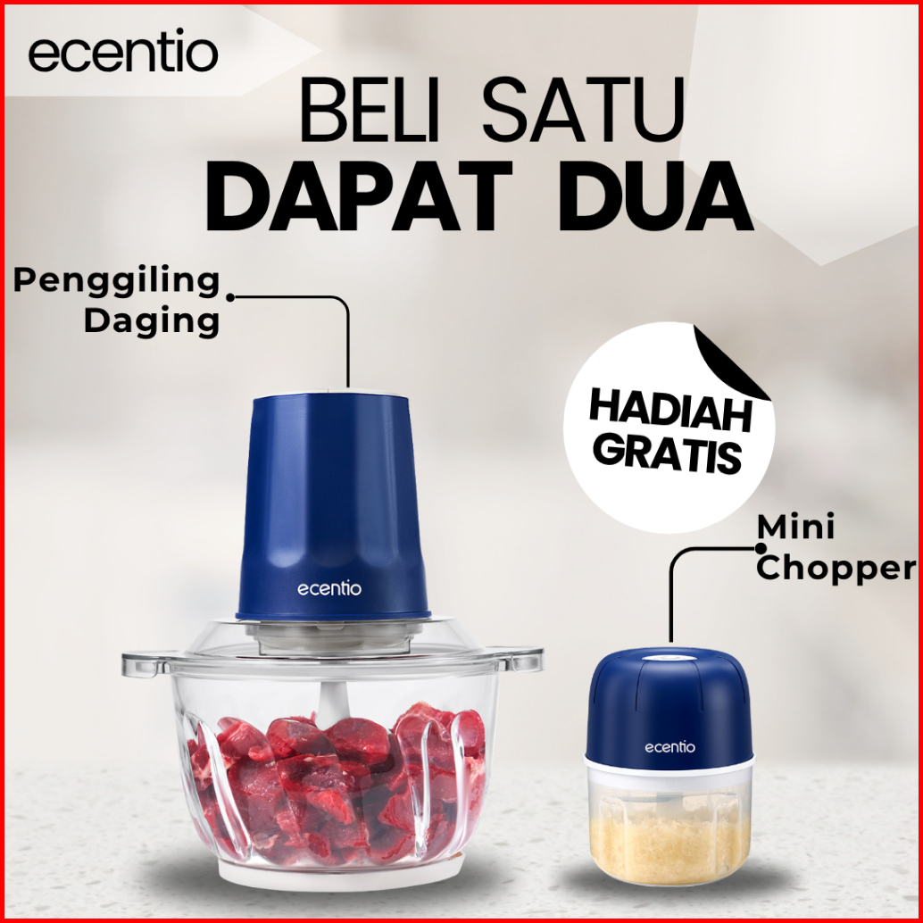 Ecentio Penggiling Daging Listrik 2l Besar Kaca 6 Pisau Food Processor 2 Kecepatan Giling Daging Bumbu Kapasitas Besar A