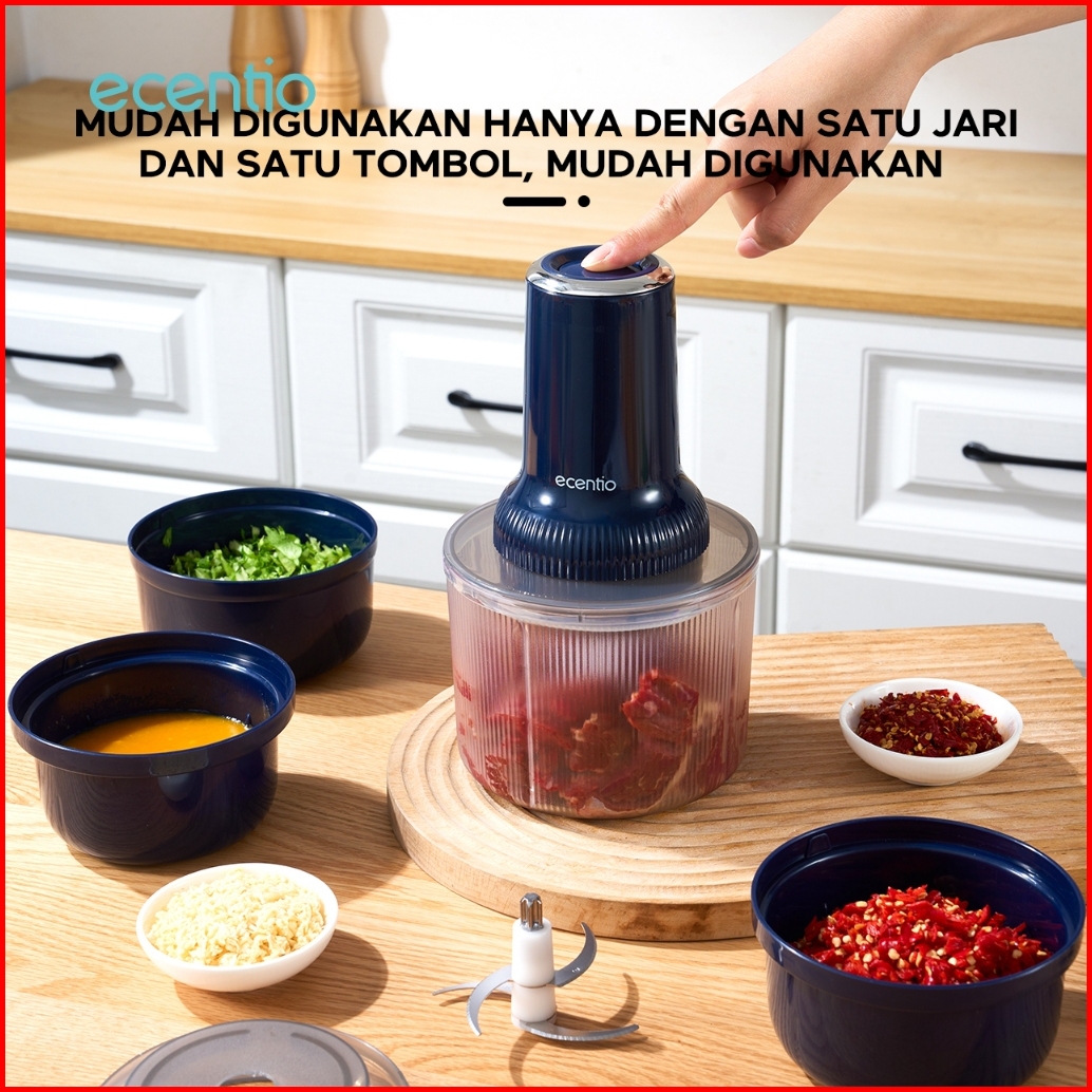 Ecentio 4-in-1 Food Chopper Set Penggiling Daging 1.2l 3 Cup 300ml Anti Bau Untuk Mpasi Sambal Bayi Food Grade