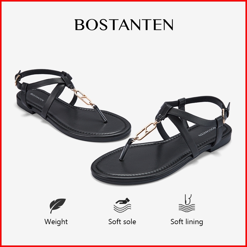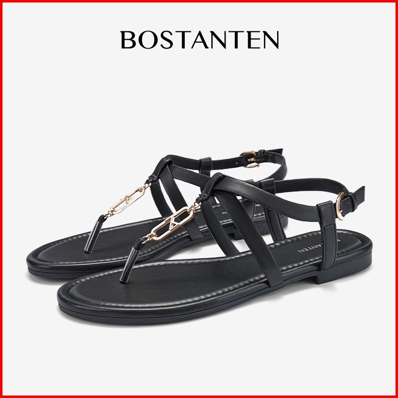 New Arrival Bostanten Sandal Wanita Sandal Sepatu Berbentuk T Dengan Gesper Logam Kecil