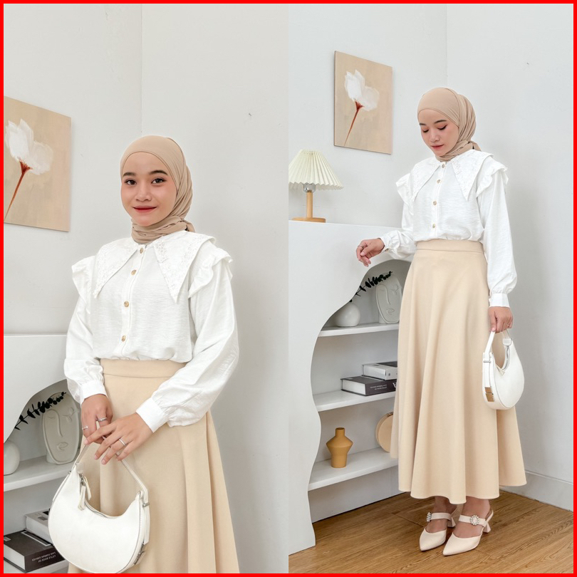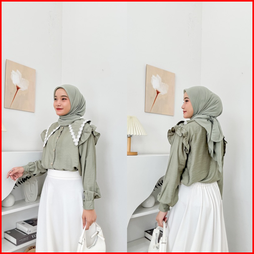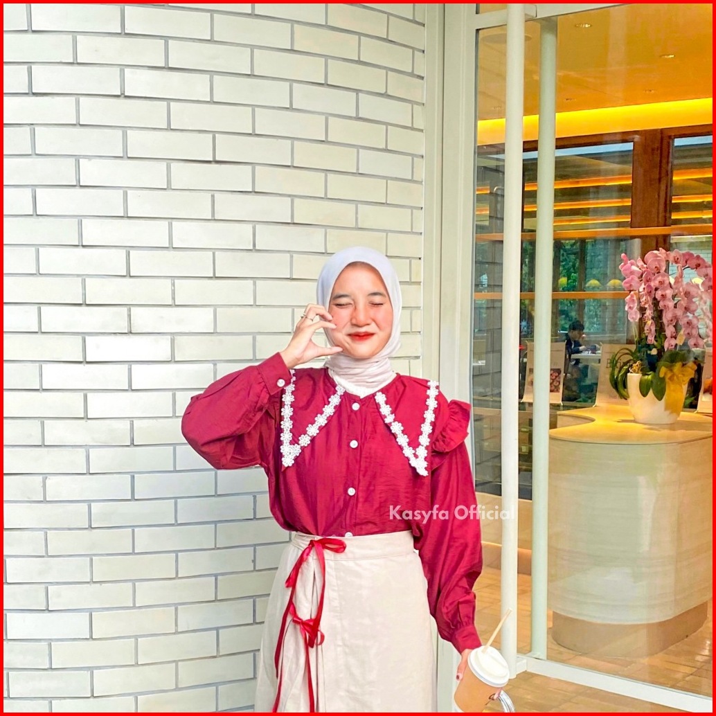 Alifia Top Blouse Sailor Wanita Tasya Kemeja Polo Linen Kerah Renda