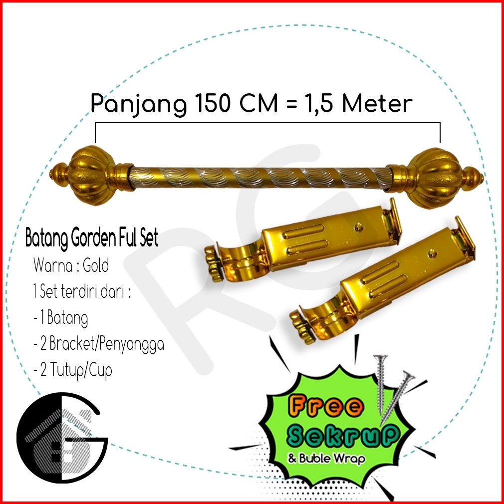 Batang Gorden Tongkat Gorden 50cm 75cm 100cm 125cm 150cm 200cm
