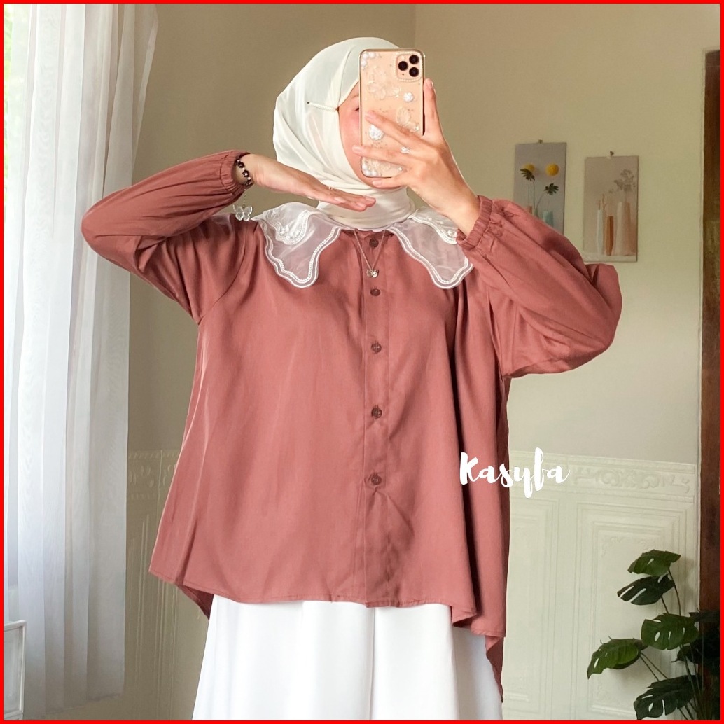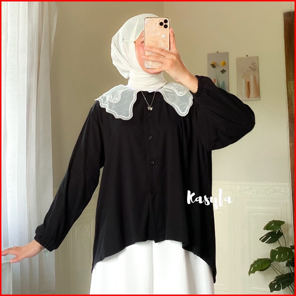 Belinda Kemeja Wanita Rayon Kerah Sailor Tile Bordir