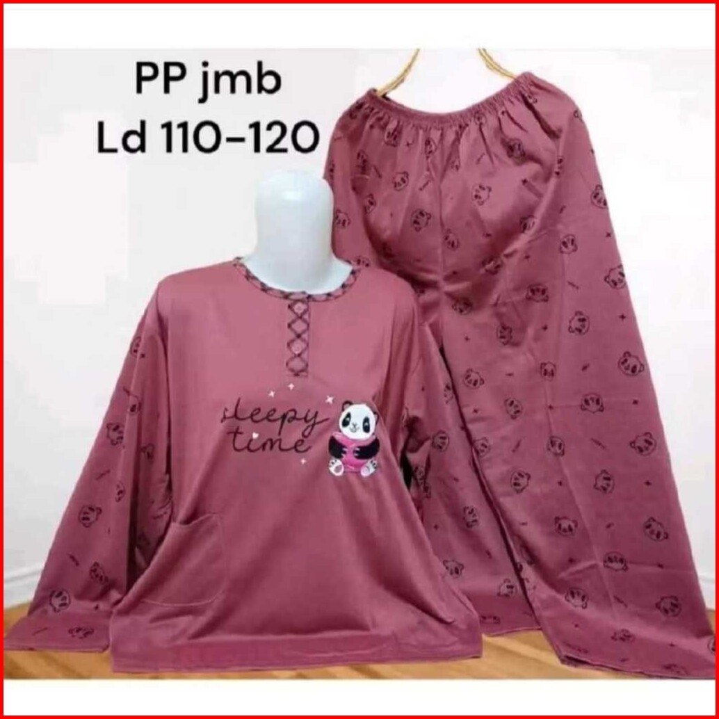 Set Pp Baju Tidur Kaos Lengan Panjang Dan Celana Panjang Jumbo Babydoll Wanita Ld 110-120cm