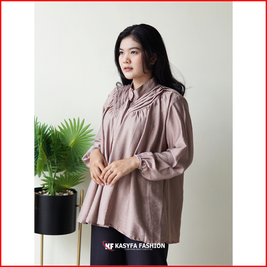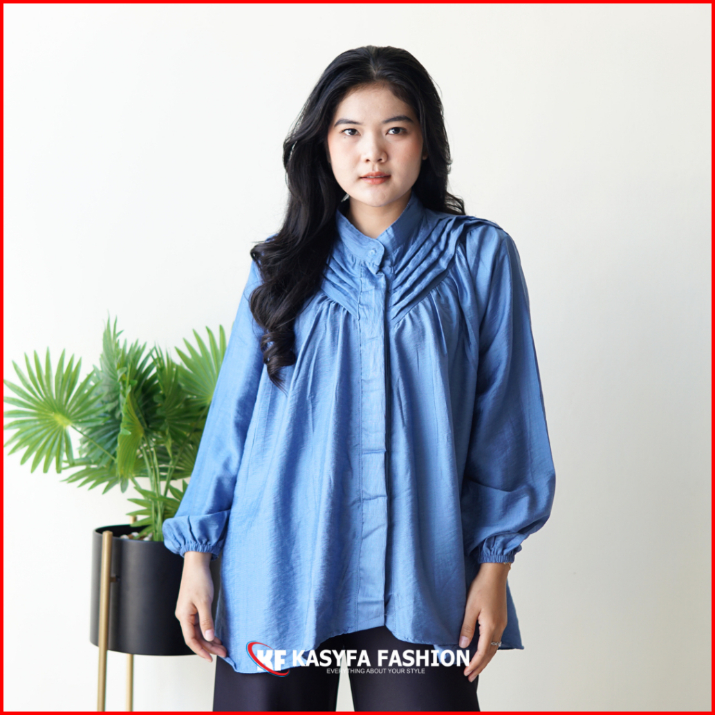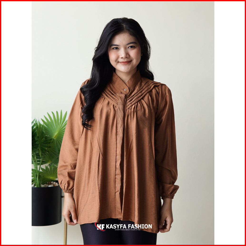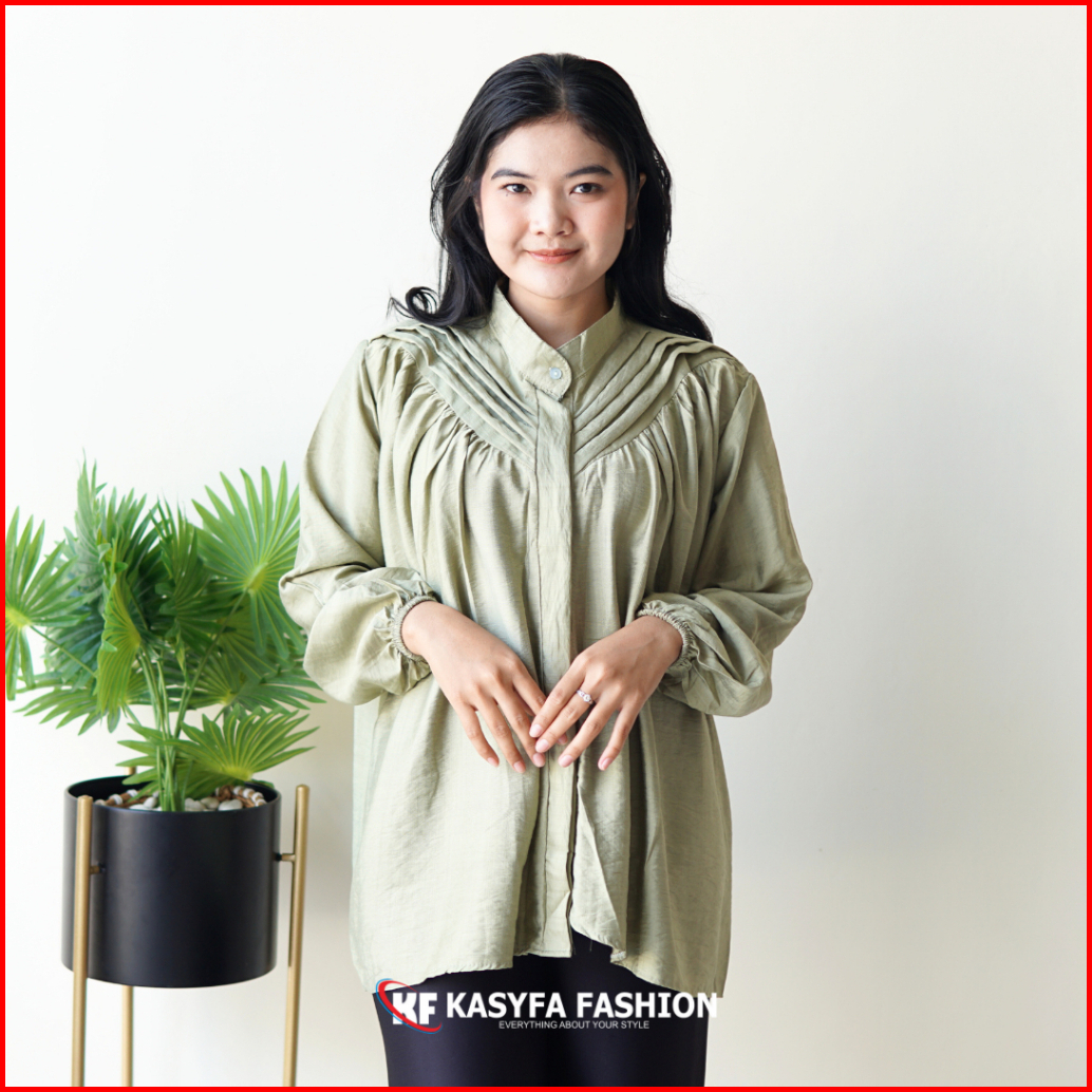 Vinna Kemeja Lipit Polo Linen Wanita All Size
