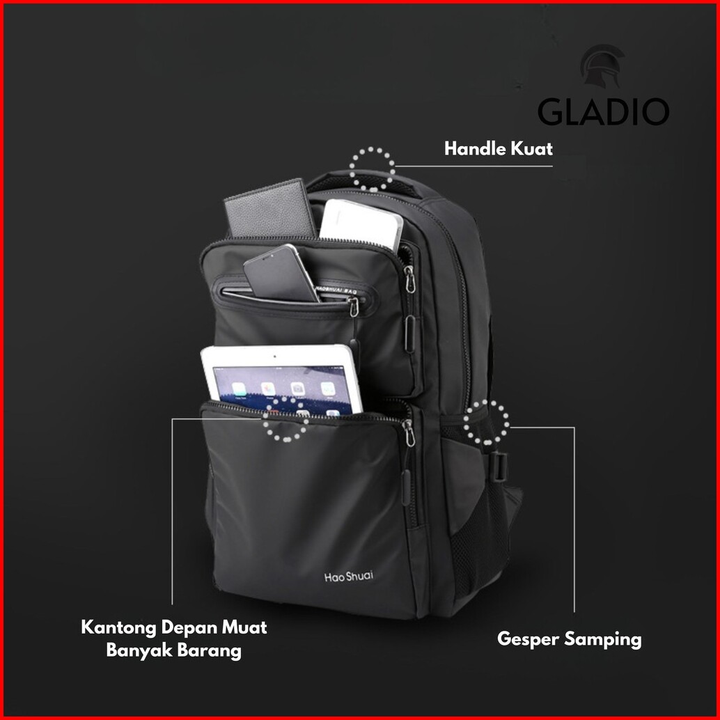 Gladio Tas Ransel Pria Shikaku Hitam Anti Air Muat Laptop Backpack Traveler Terbaru Gld027b5