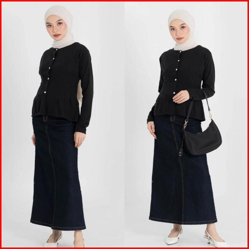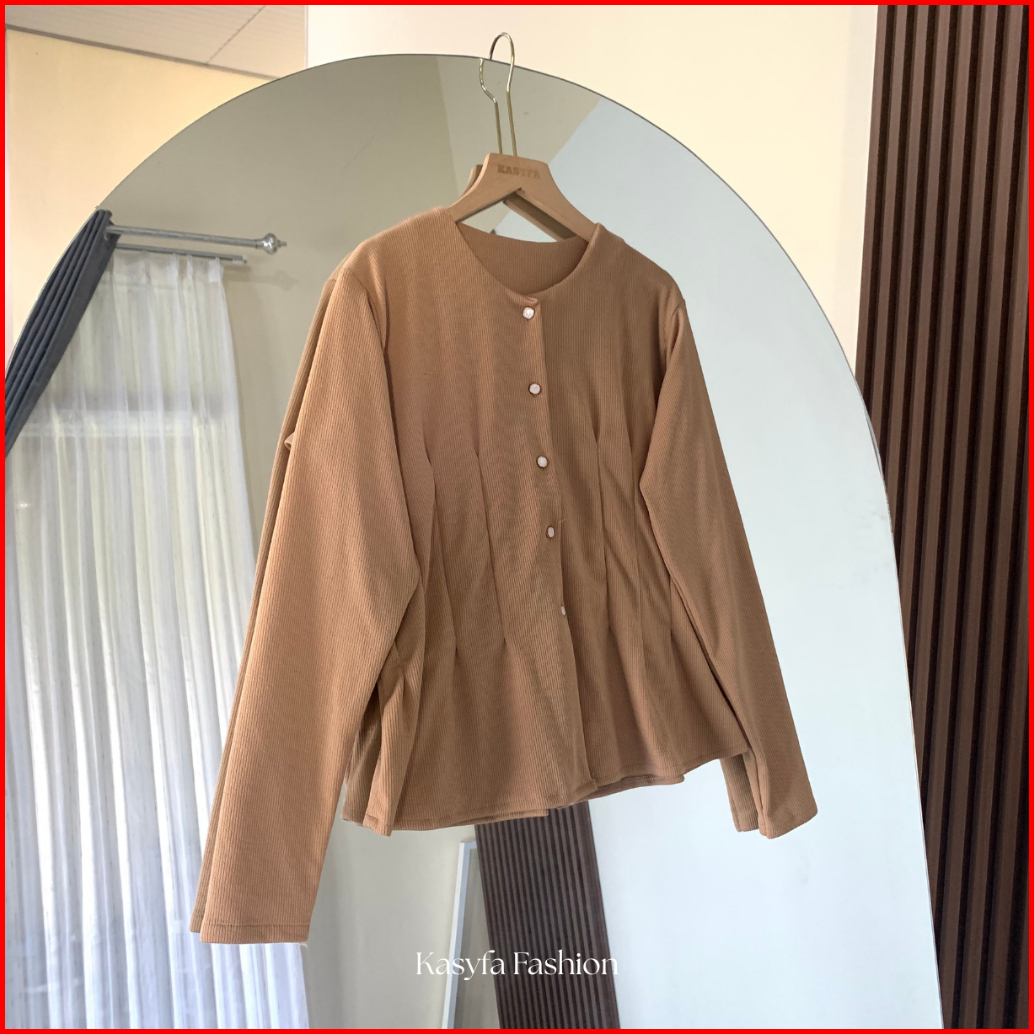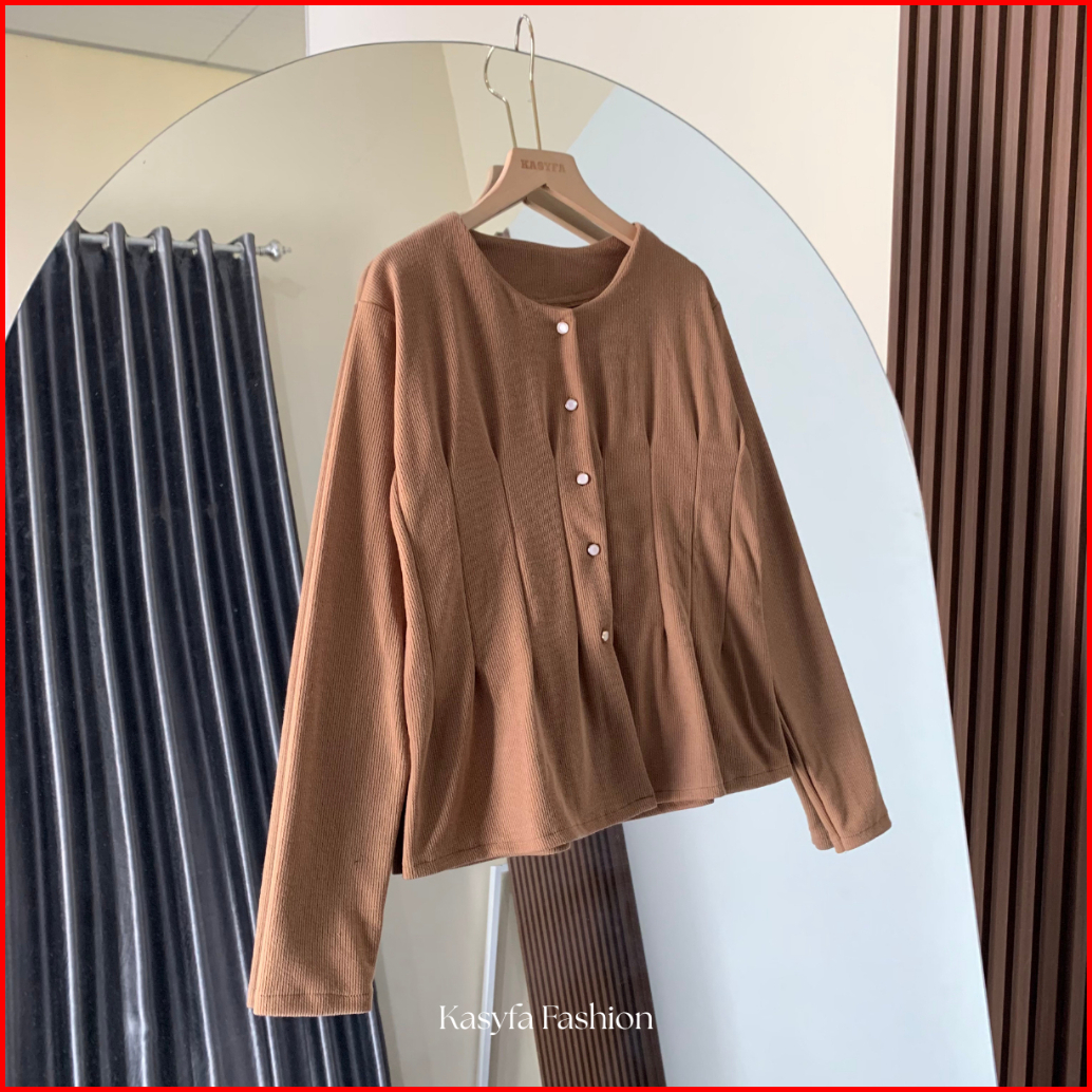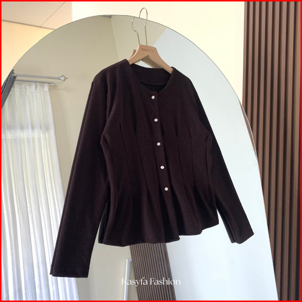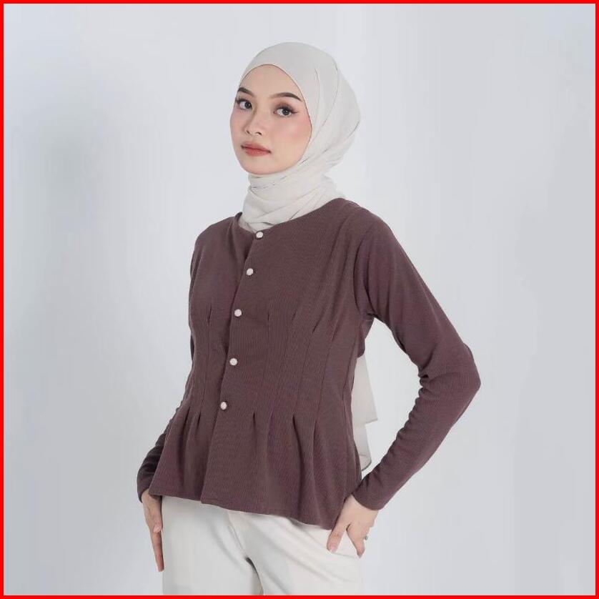 Selina Fitted Blouse Wanita Snowrib Knit Atasan Lengan Panjang Fitted