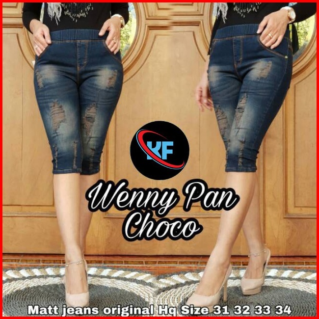 Wenny Jeans Sobek Distro 7 8 Bahan Denim Blue Brown