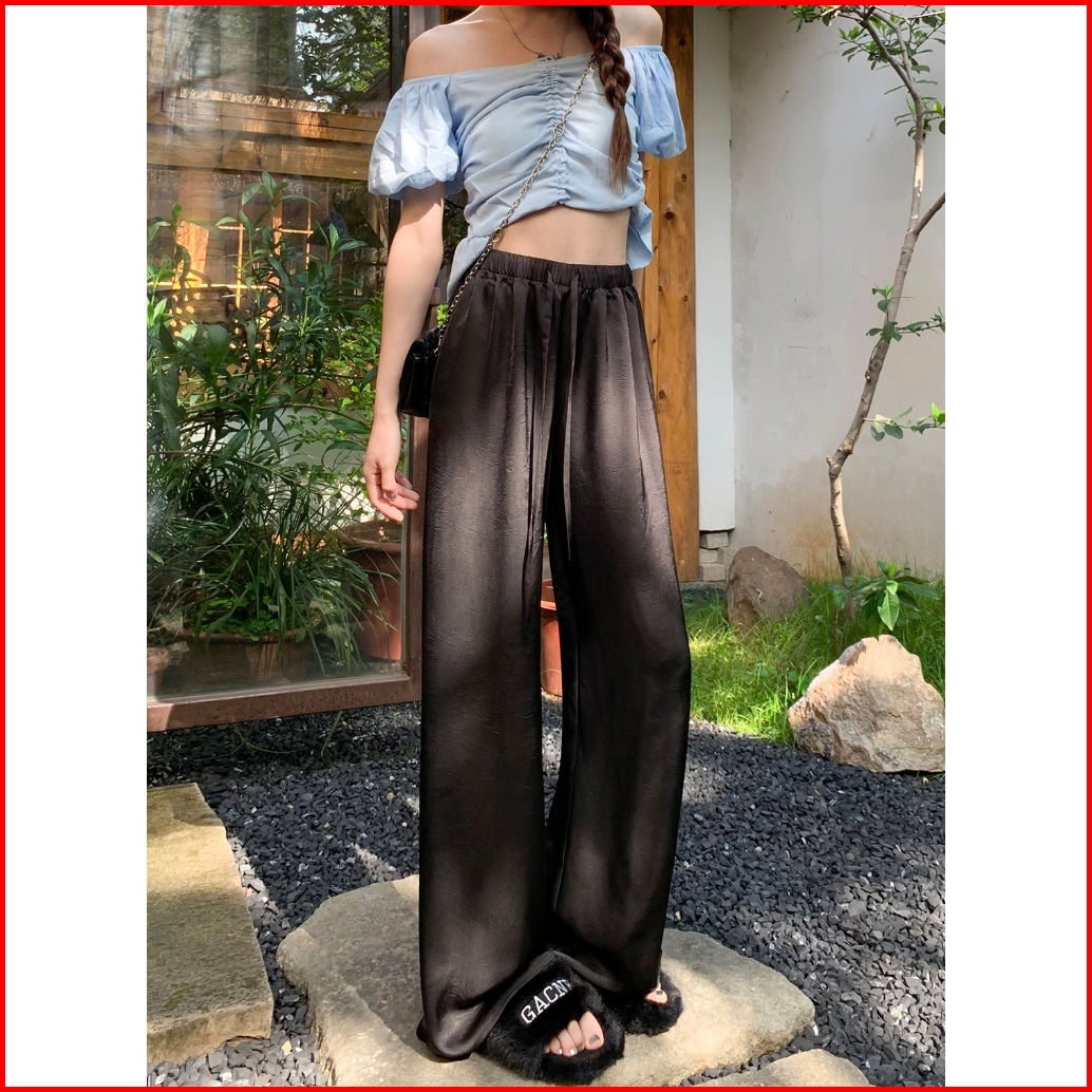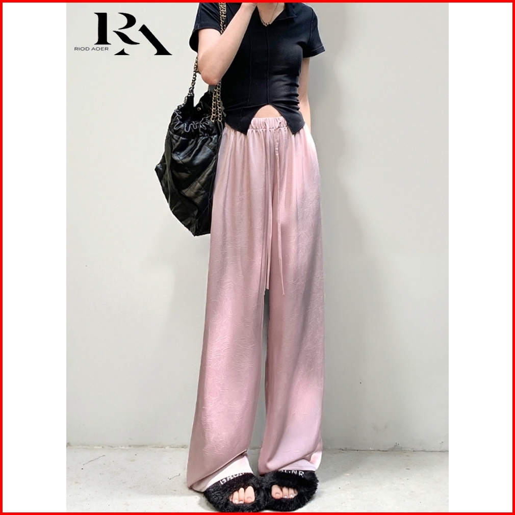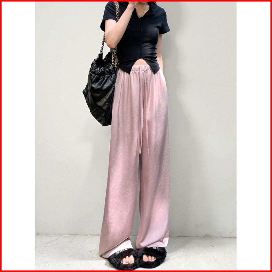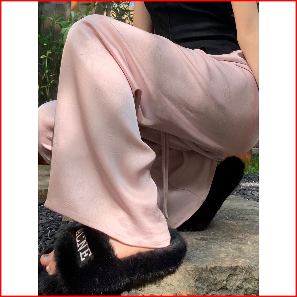Riod Aoer Celana Panjang Lebar Wanita Merah Muda Asetat Musim Panas Tipis 2025 Baru Satin Es Sutra Menggantungkan Celana