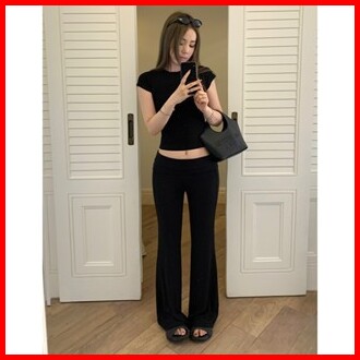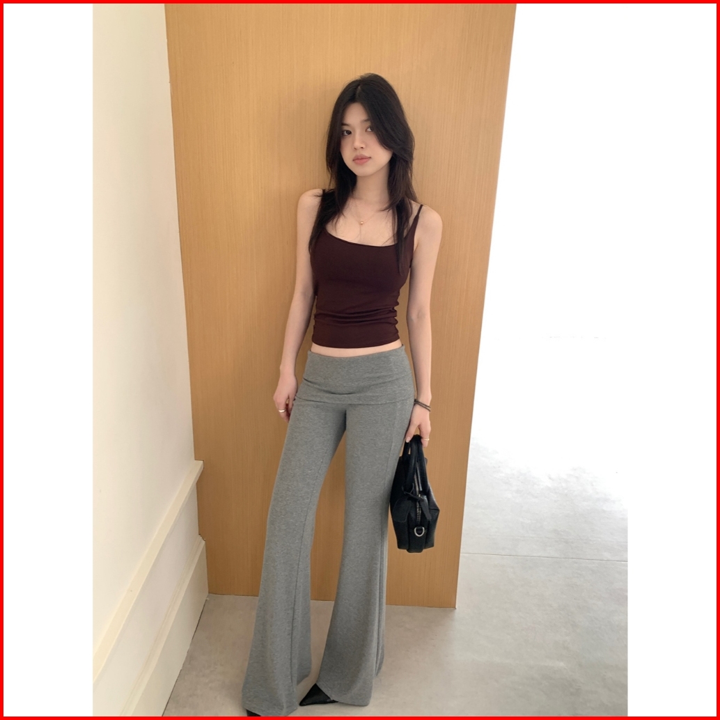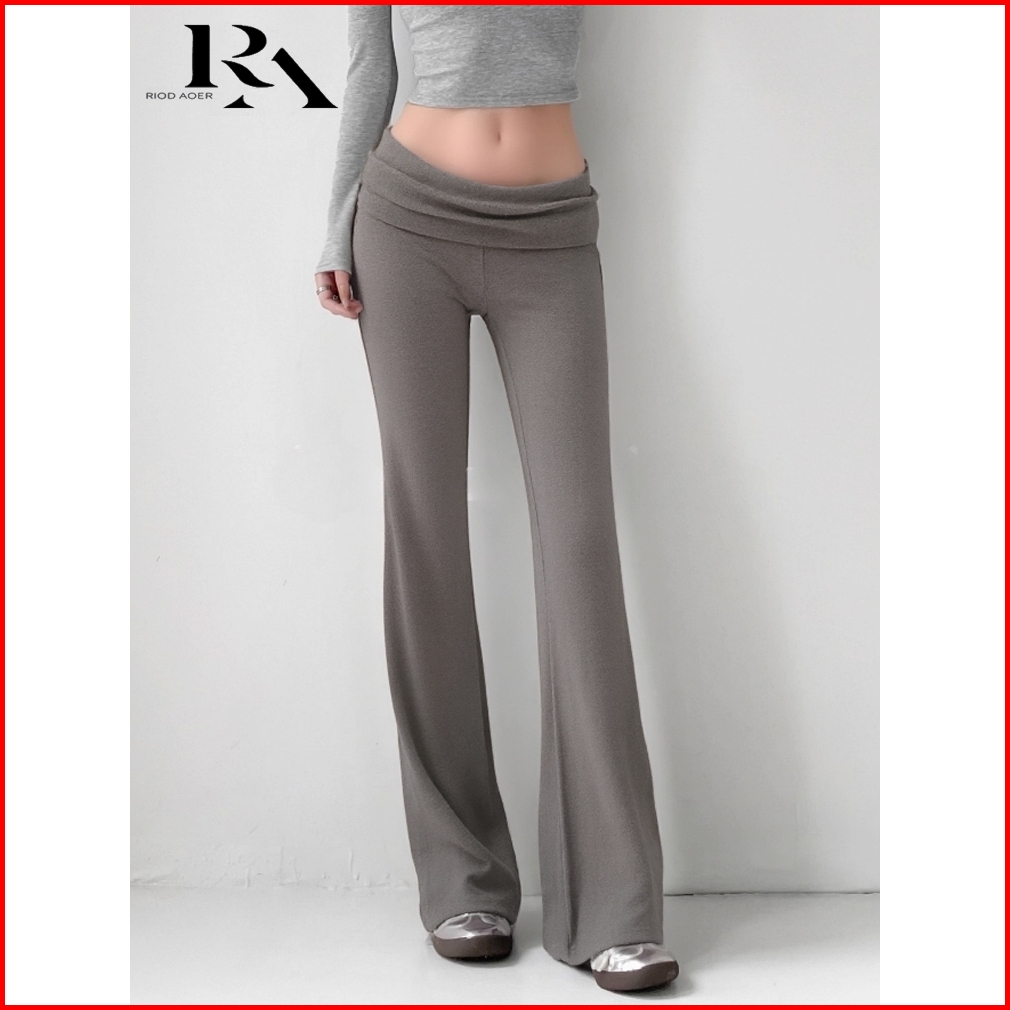 Riod Aoer Celana Rajut Abu-abu Pinggang Ke Atas Untuk Wanita Musim Panas Baru Ramping Elastis Ramping Berkobar Celana Ka