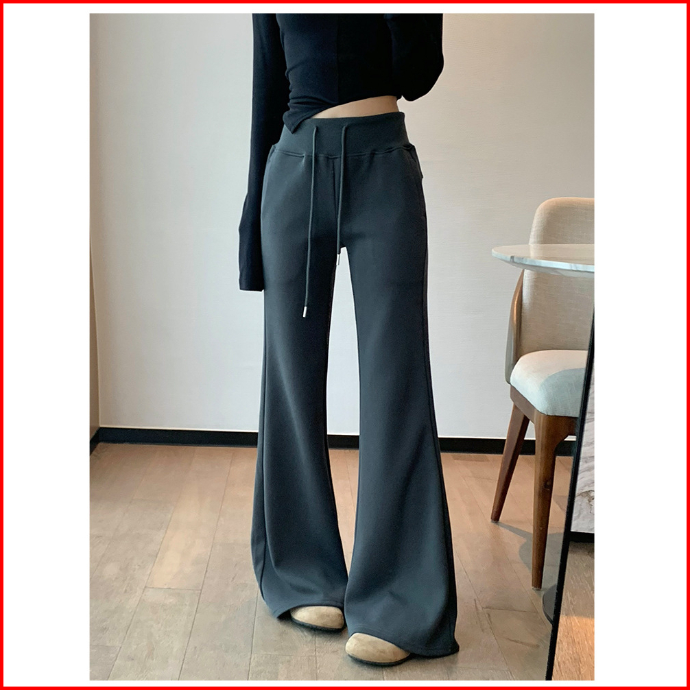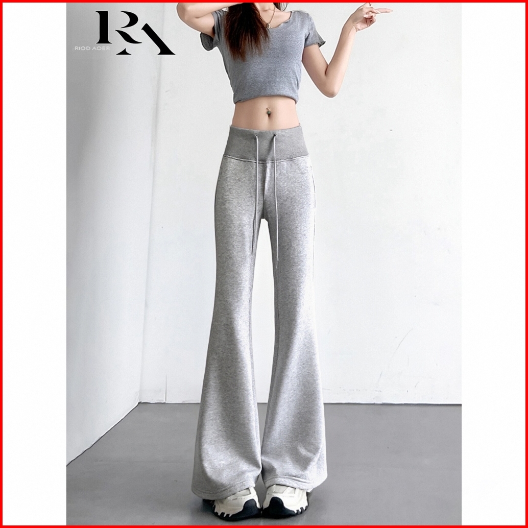 Riod Aoer Celana Olahraga Kasual Berkobar Besar Pinggang Elastis Gaya Malas Abu-abu Wanita Musim Semi Dan Musim Panas Ce