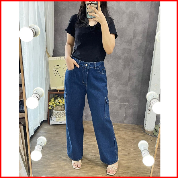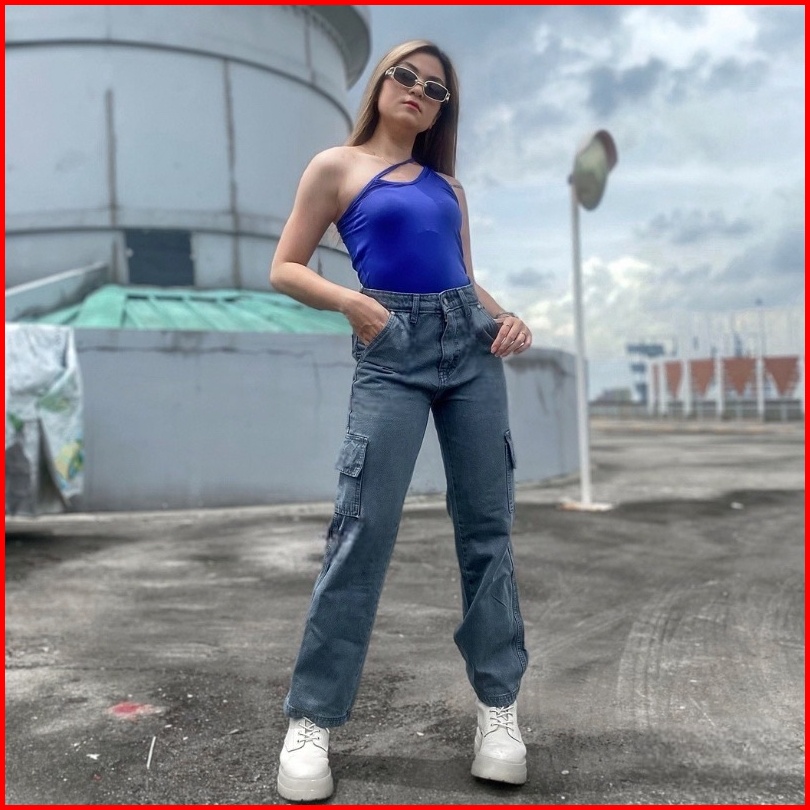 Shena Highwaist Kulot Jeans Cargo Wanita Denim