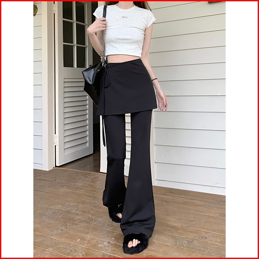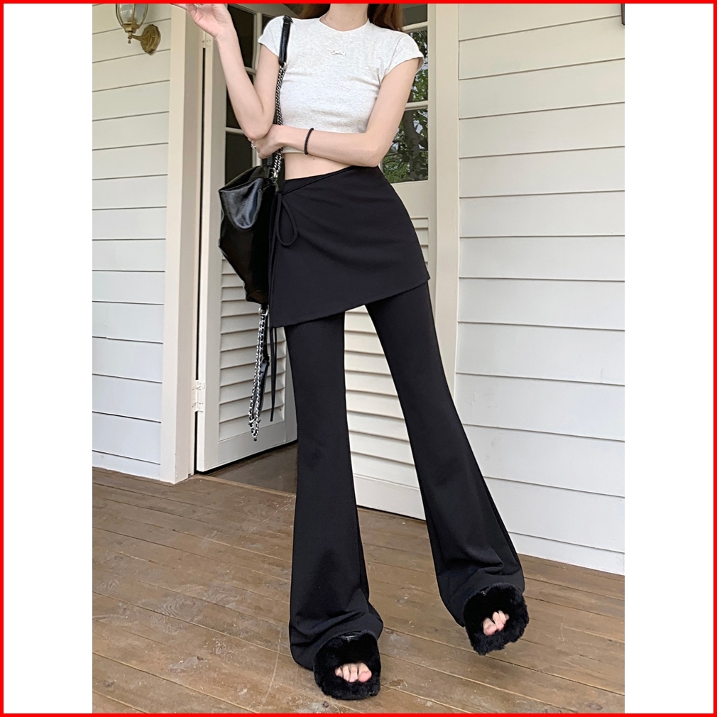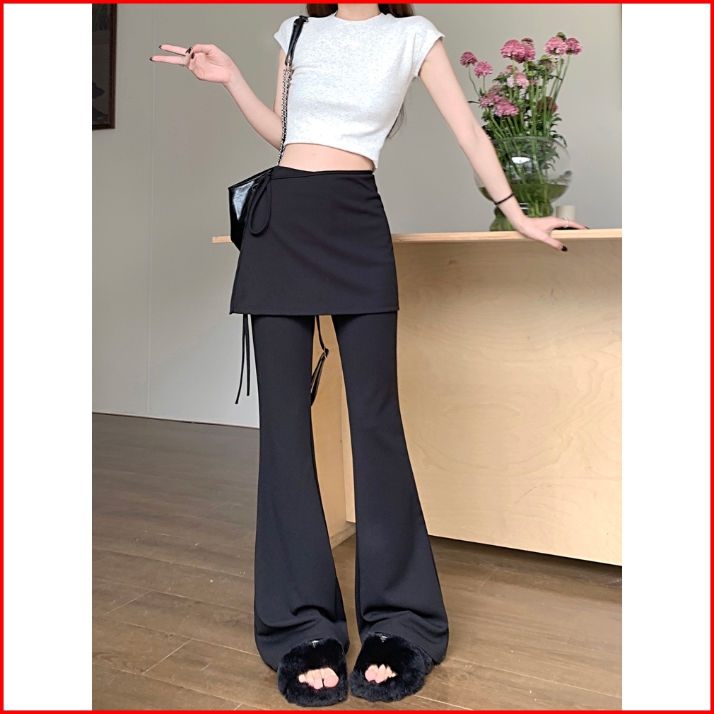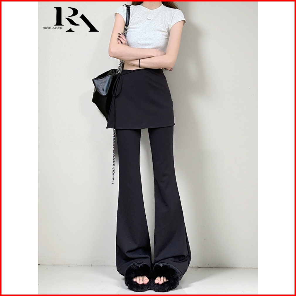 Riod Aoer Celana Kasual Pinggang Tinggi Hitam Untuk Wanita Desain Musim Panas Celana Panjang Yang Dapat Dilepas Dengan P