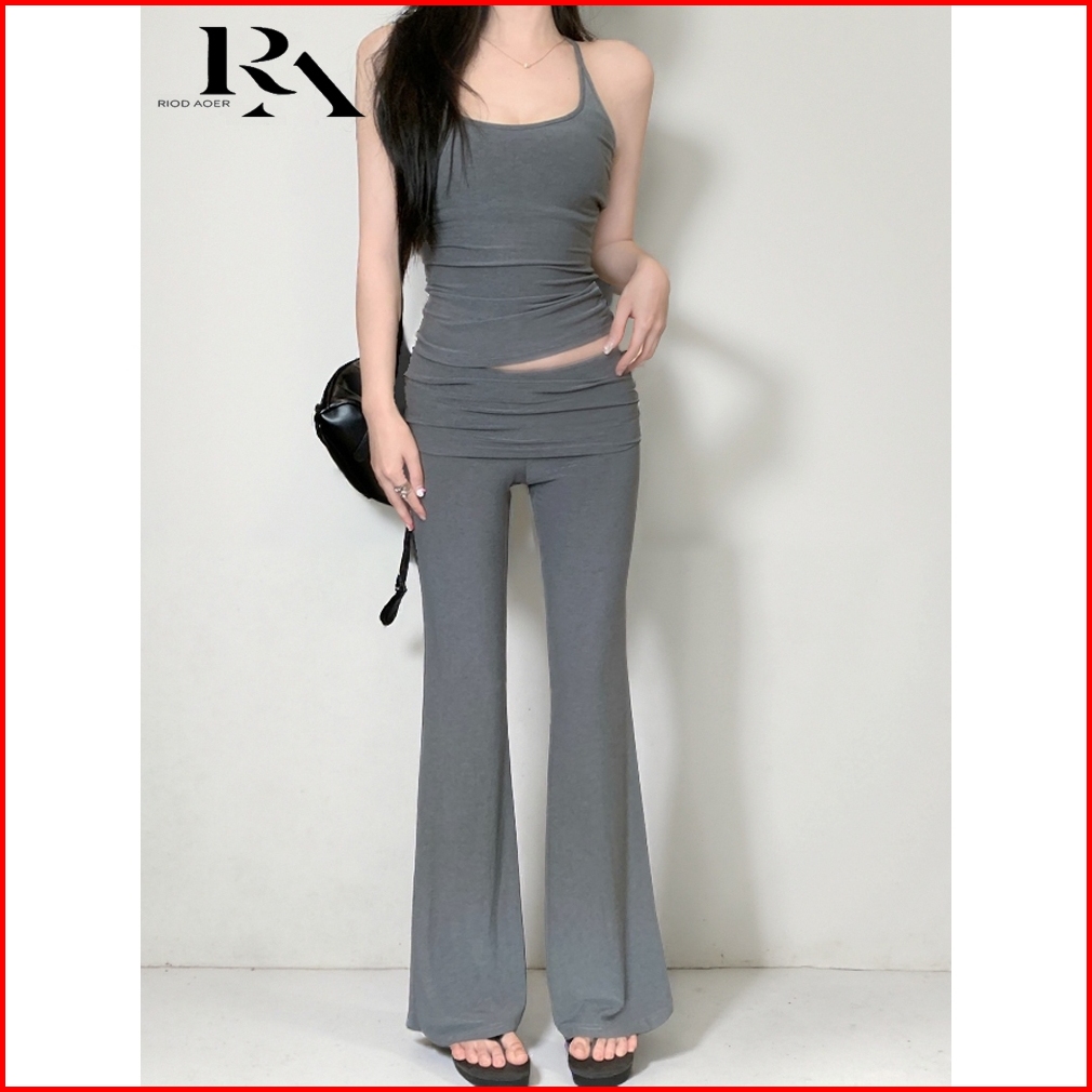 Riod Aoer Celana Kasual Rajutan Lembut Malas Korea Untuk Wanita Musim Panas 2025 Temperamen Pinggang Elastis Celana Ramp