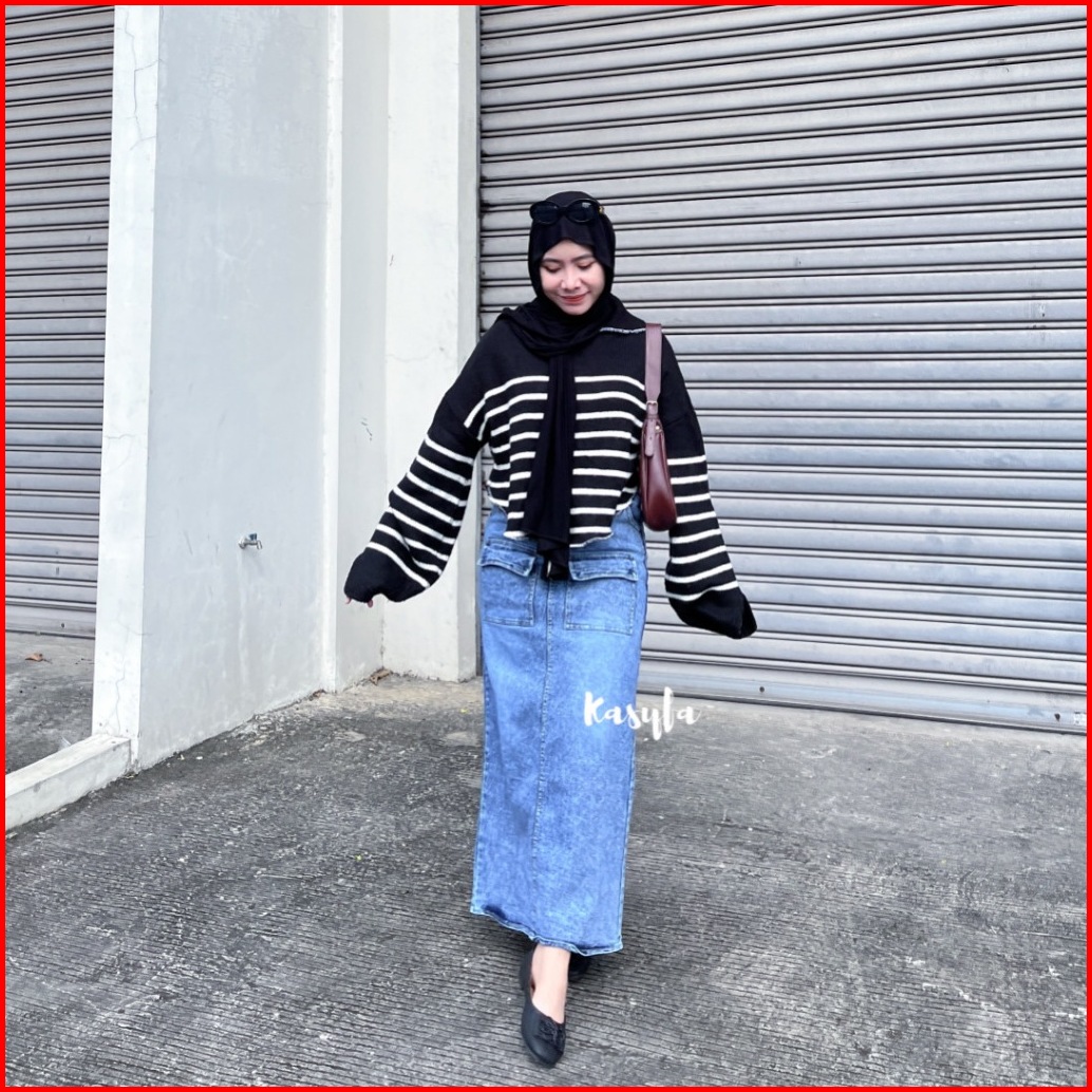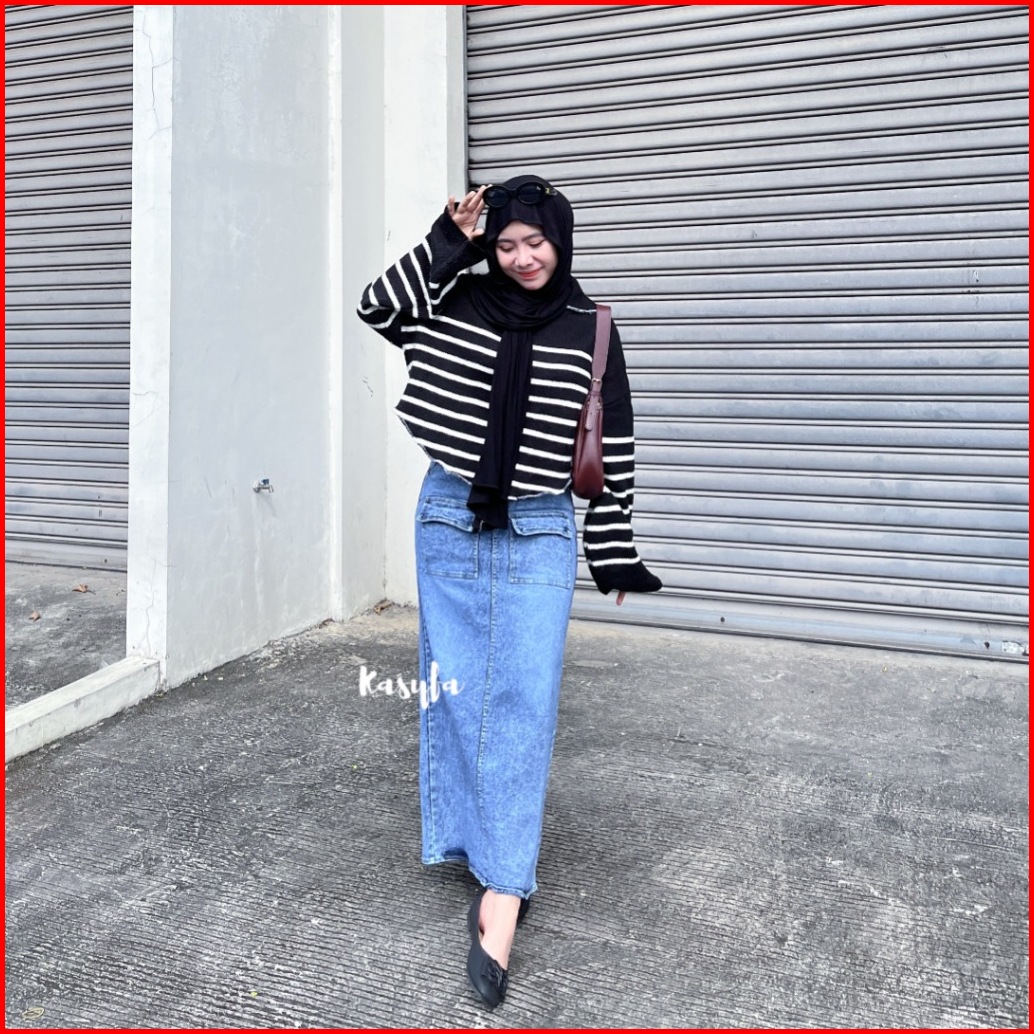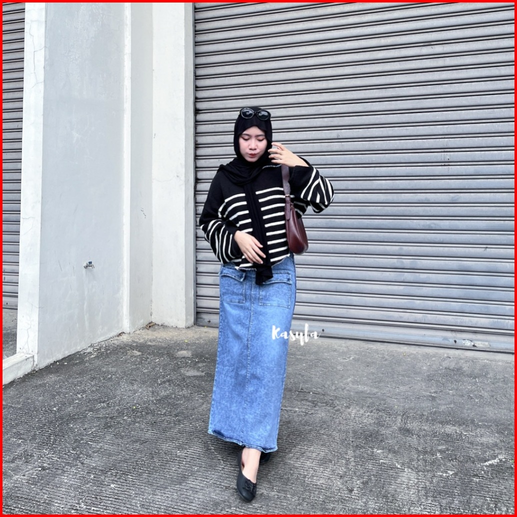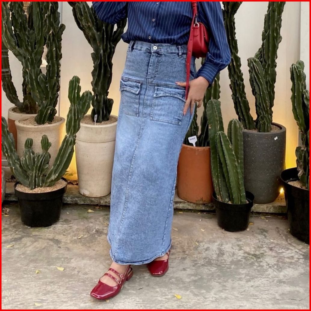 Lala Rok Jeans Variasi Belah Skirt Jeans Saku Depan