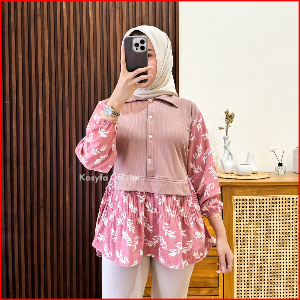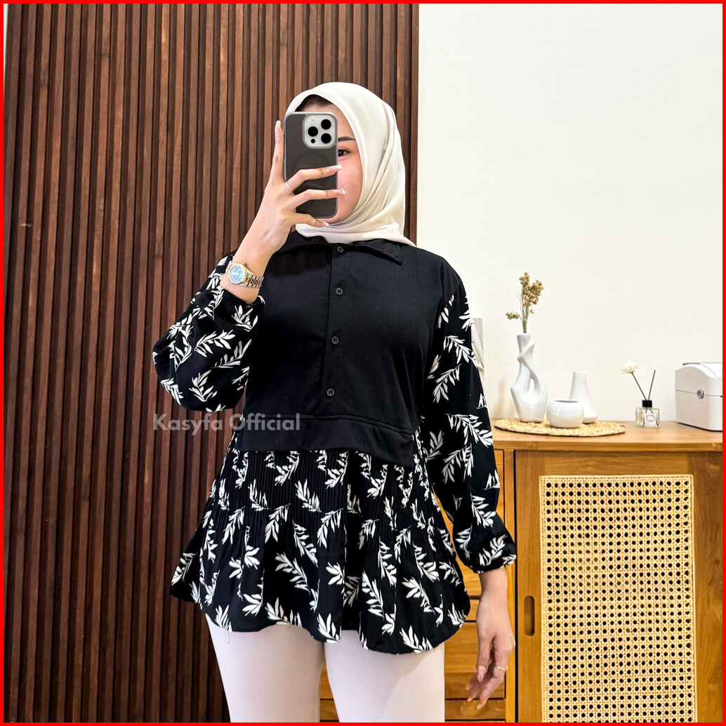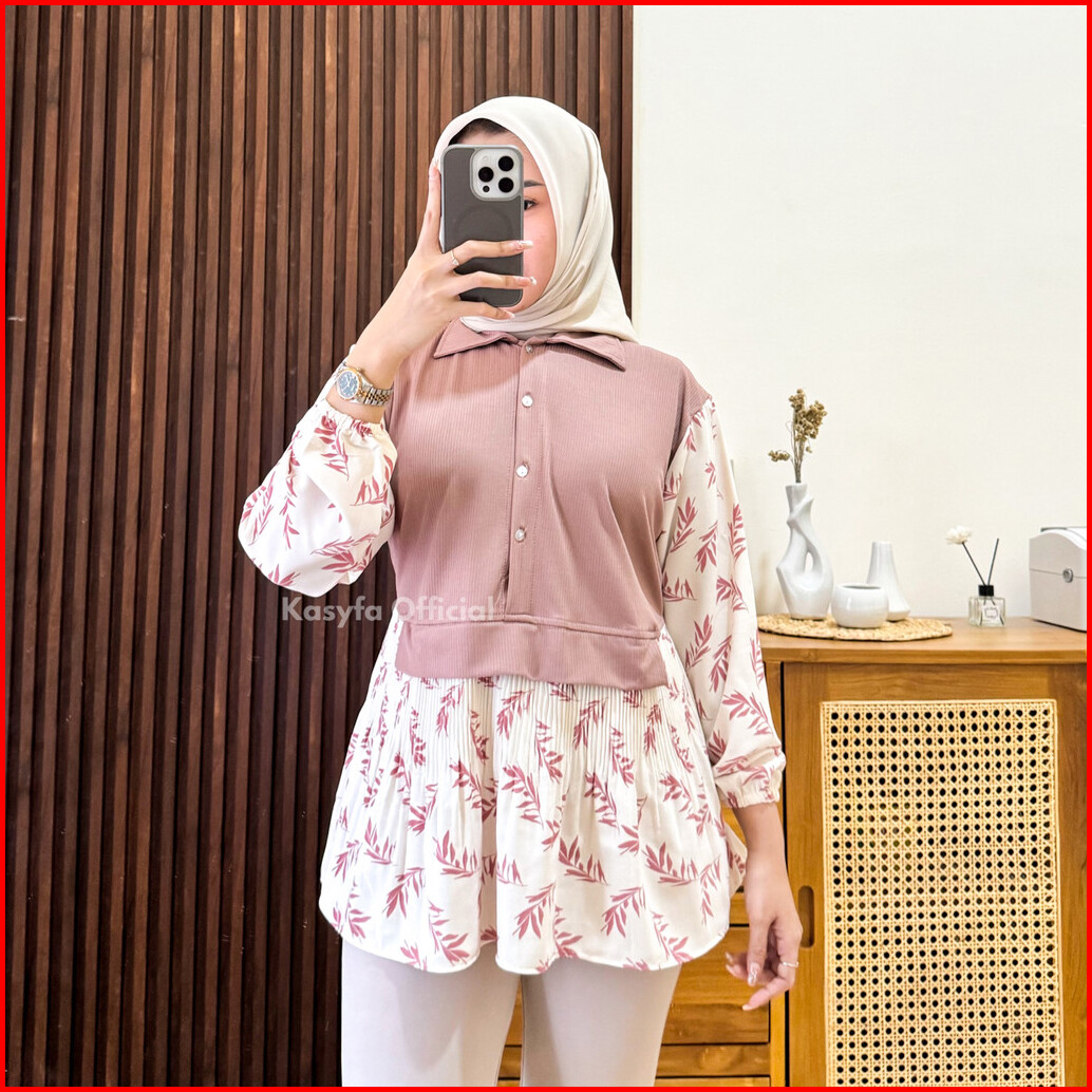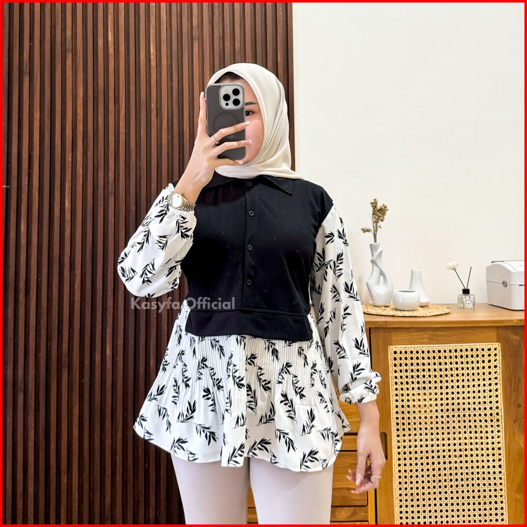 Vanes Kemeja Motif Wanita Kombinasi Knit