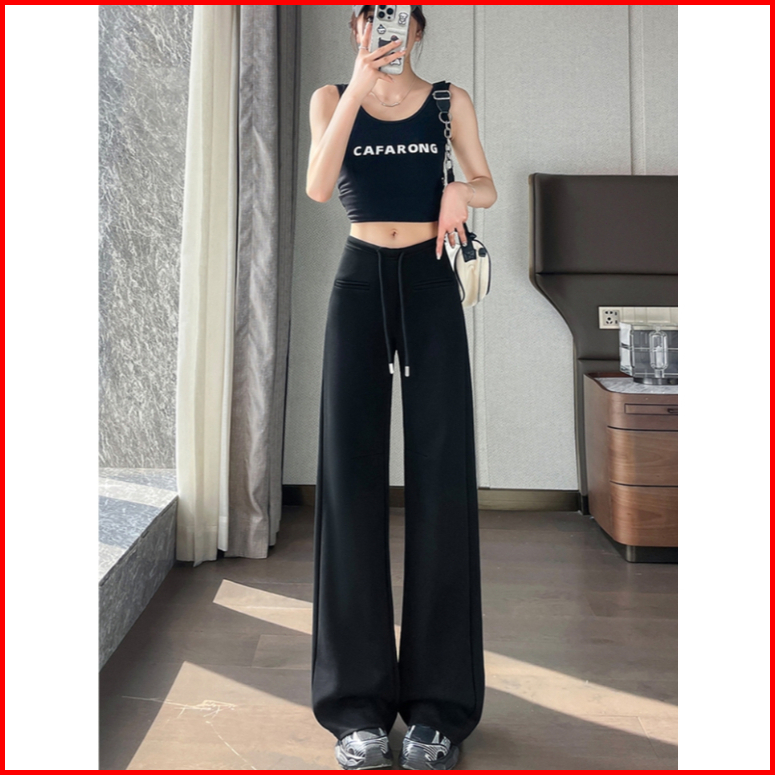 2toyoung Celana Kasual Lurus Longgar Serut Pinggang Tinggi Wanita