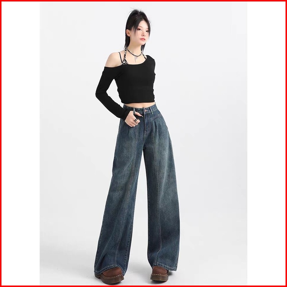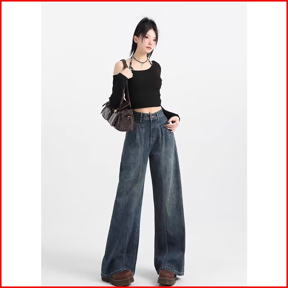Katermen Jeans Ukuran Besar-jeans Pinggang Tinggi Gaya Korea Untuk Wanita - Jeans Biru