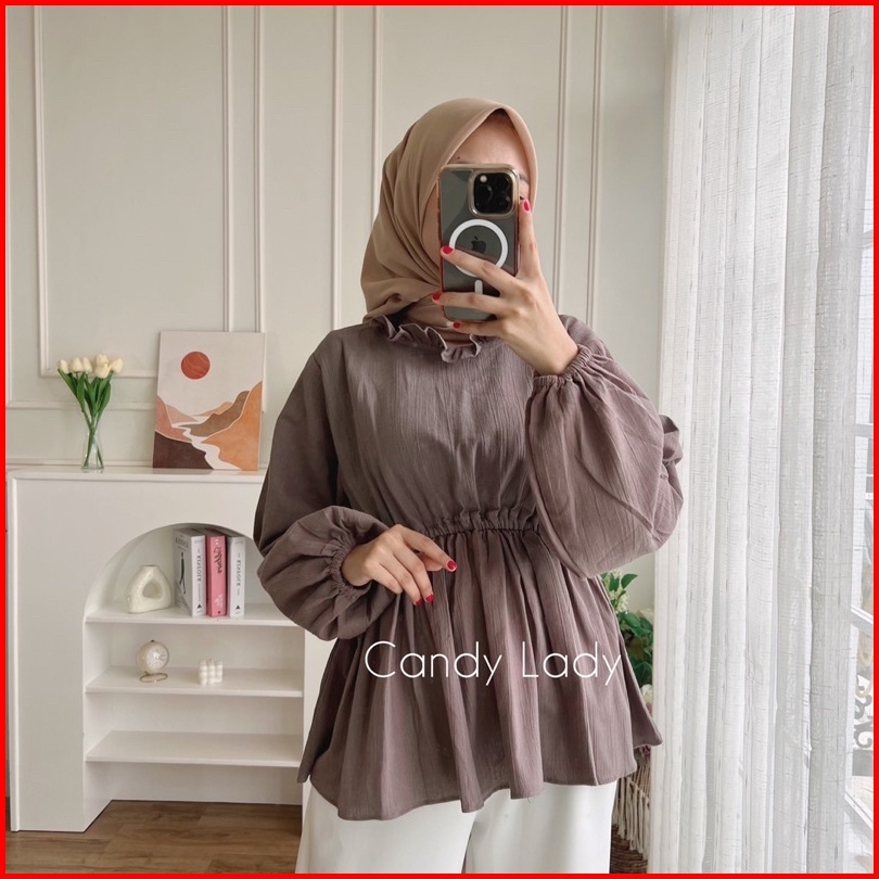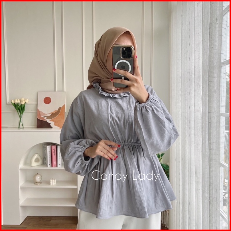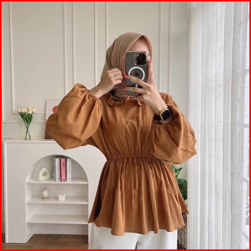 Myra Top Blouse Crinkle Pinggang Kerut Korean