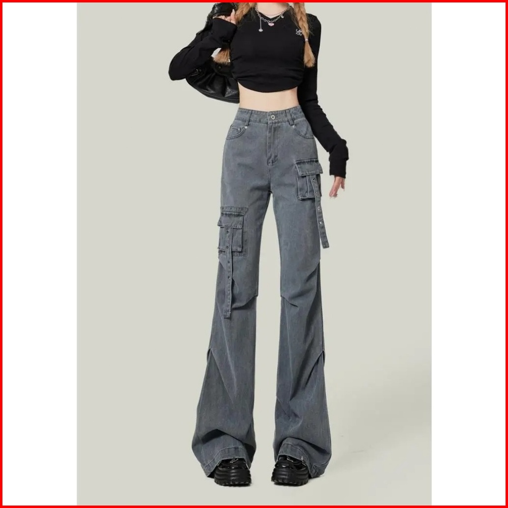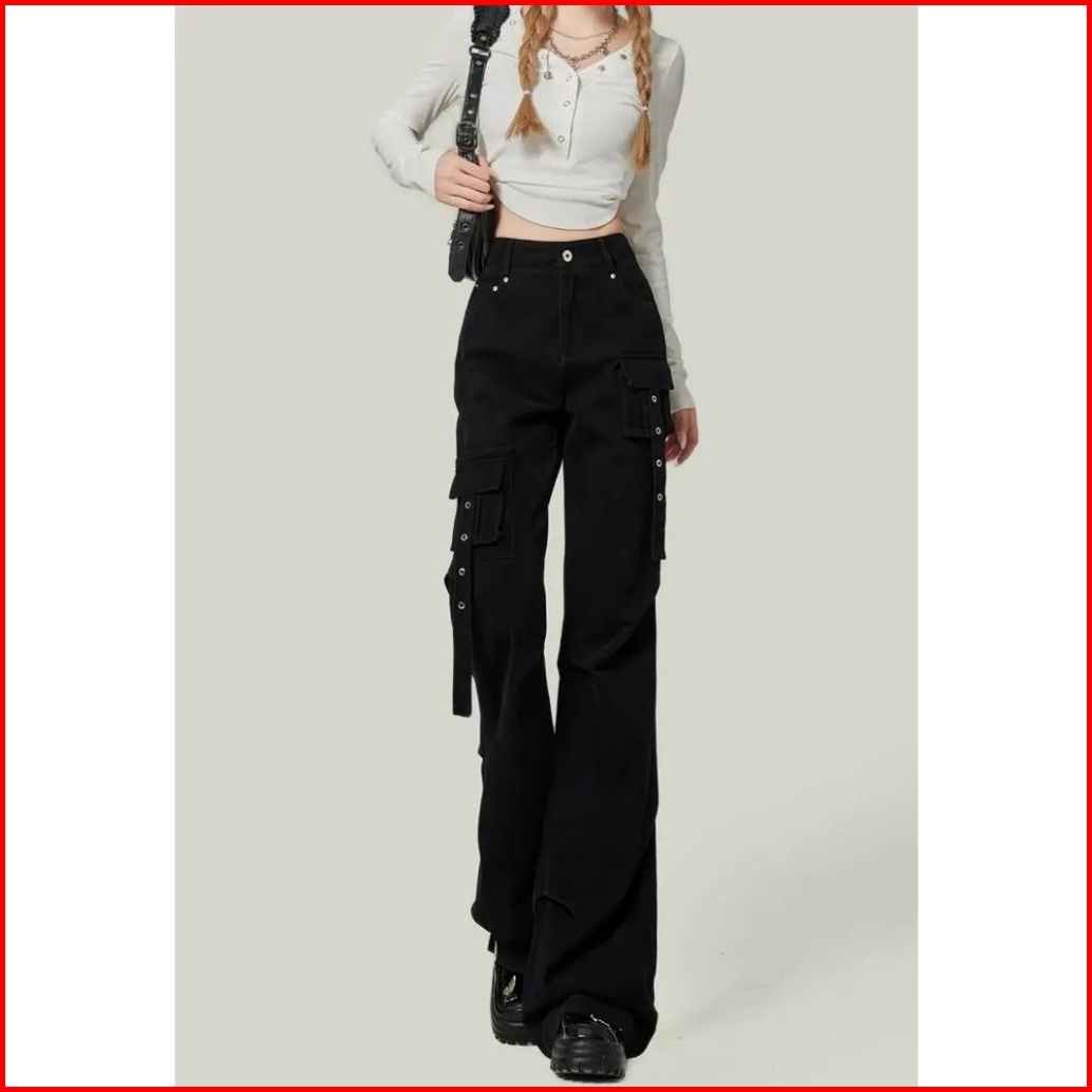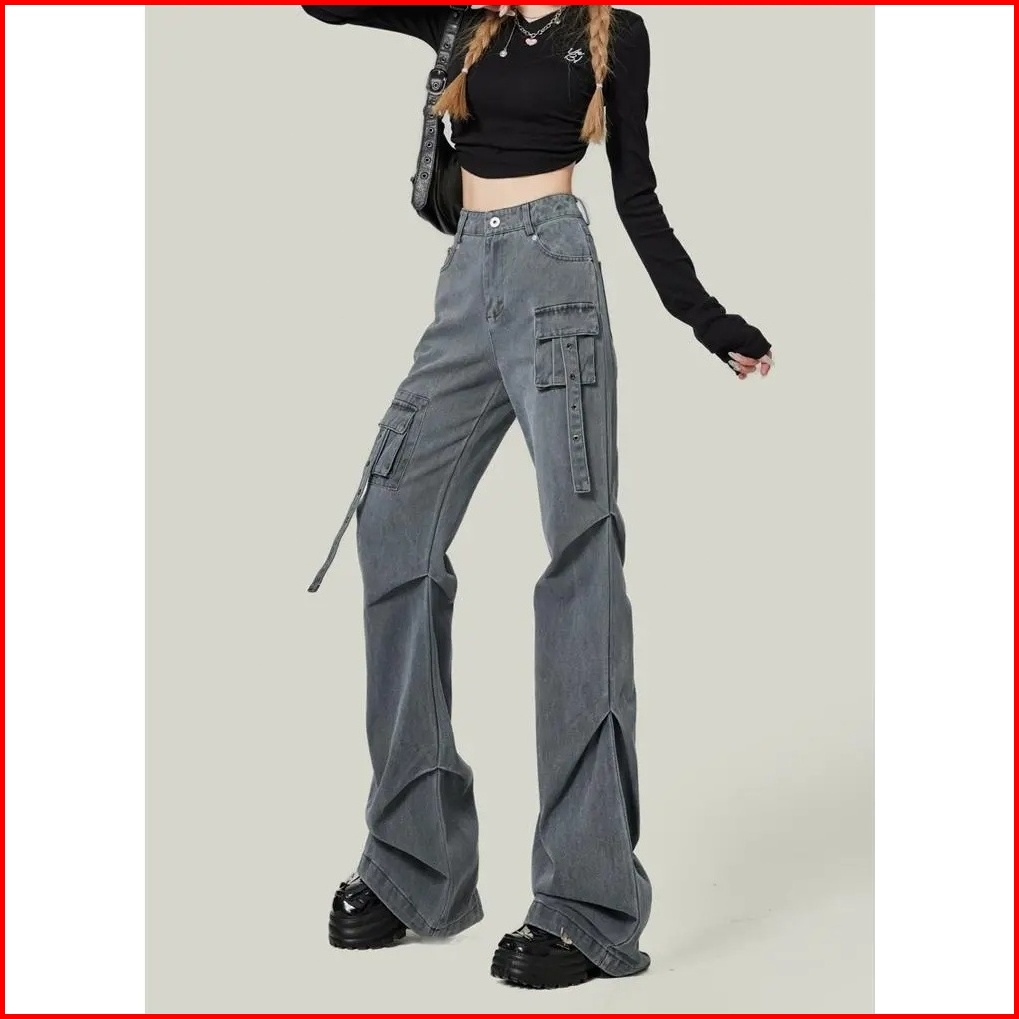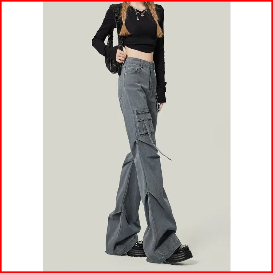 Katermen Jeans Wanita Pinggang Tinggi - Jeans Bootcut Elastis -jeans Kerja-celana Denim Kaki Lebar
