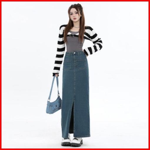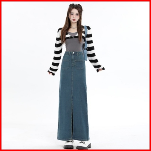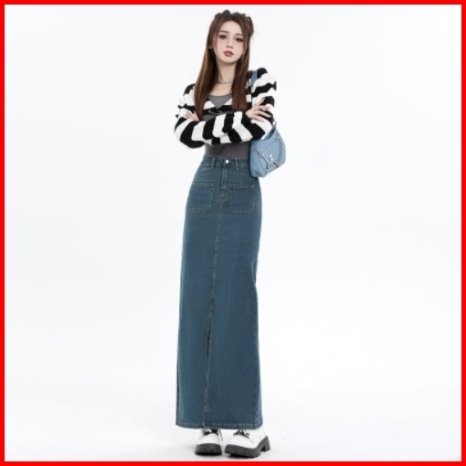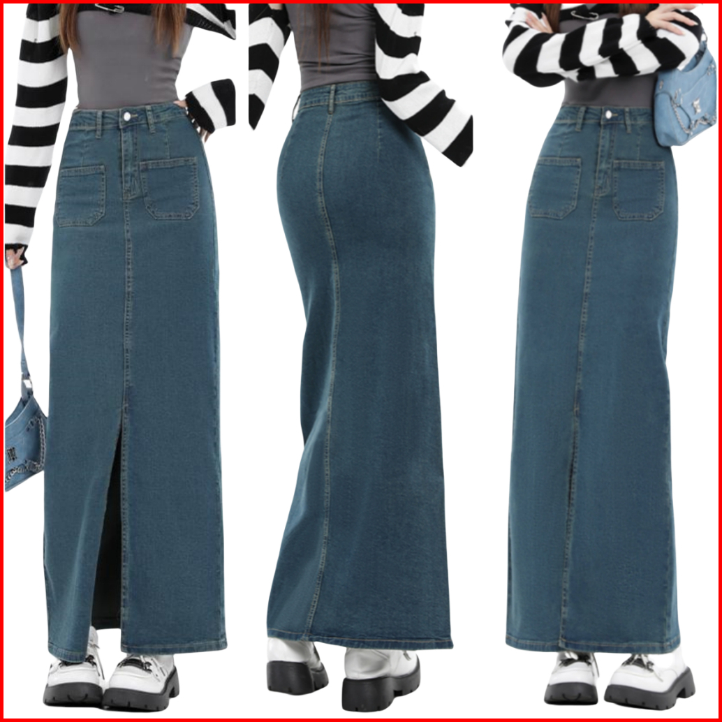 Katermen Rok Denim Oversize-rok Wanita Model A Slim Fit Pinggang Tinggi - Rok Panjang Denim Biru