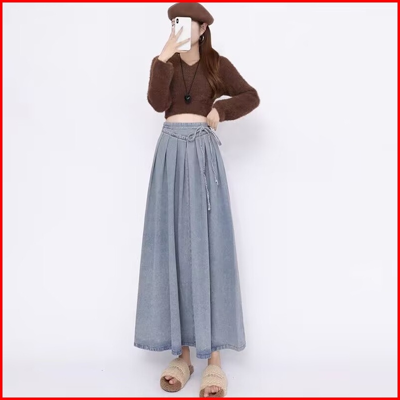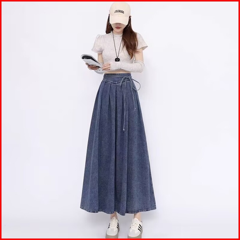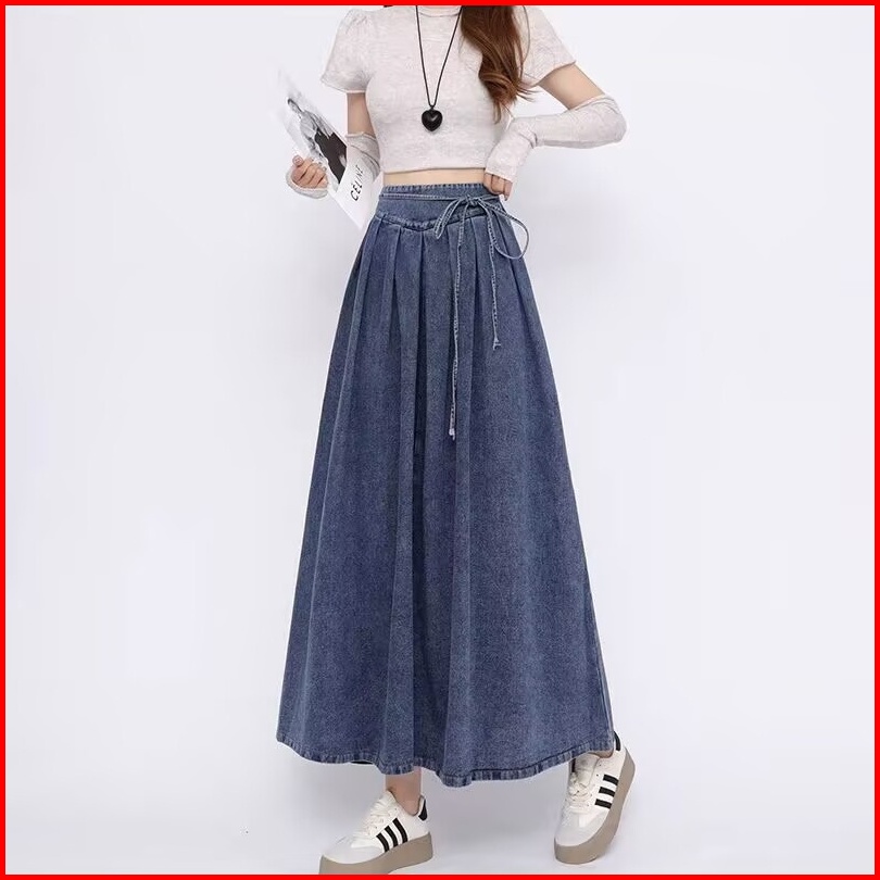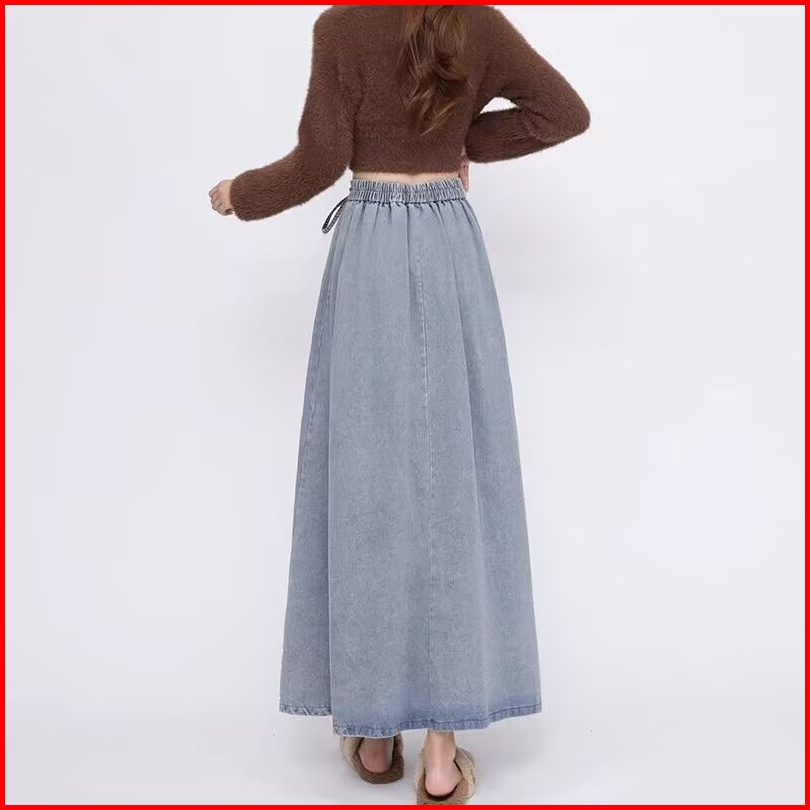 Katermen Rok Denim Wanita - Rok Maxi Denim Pinggang Tinggi - Rok Denim Biru Pinggang Elastis