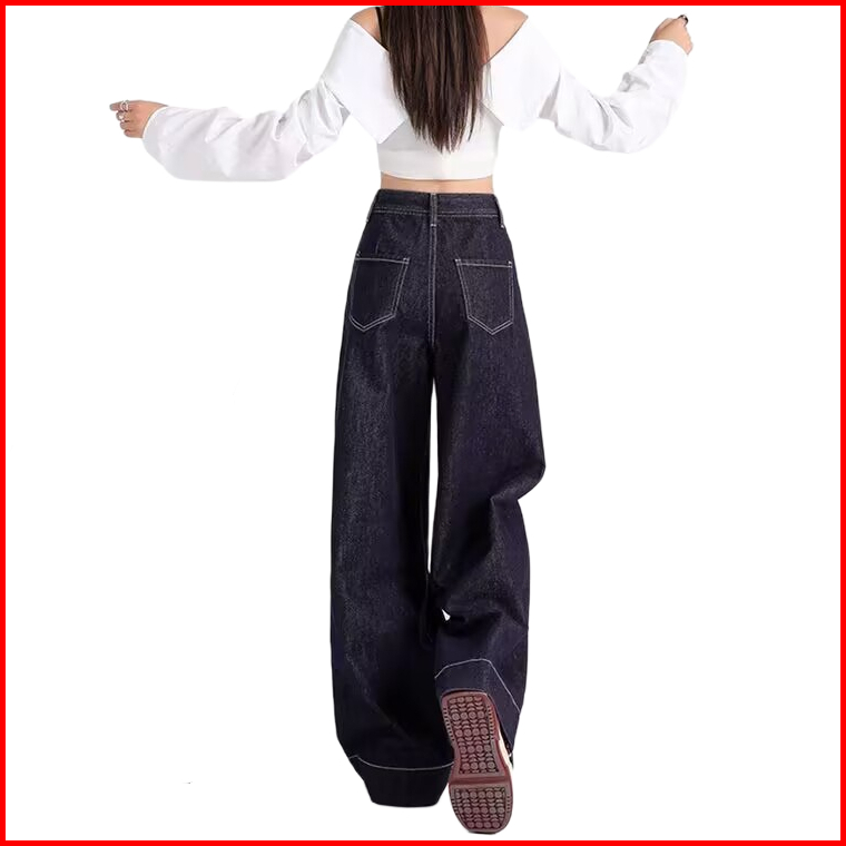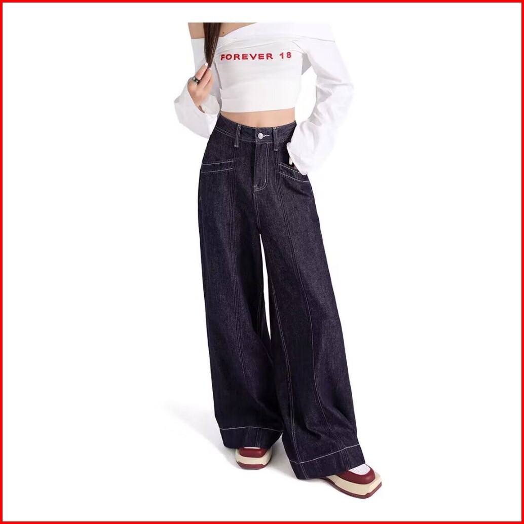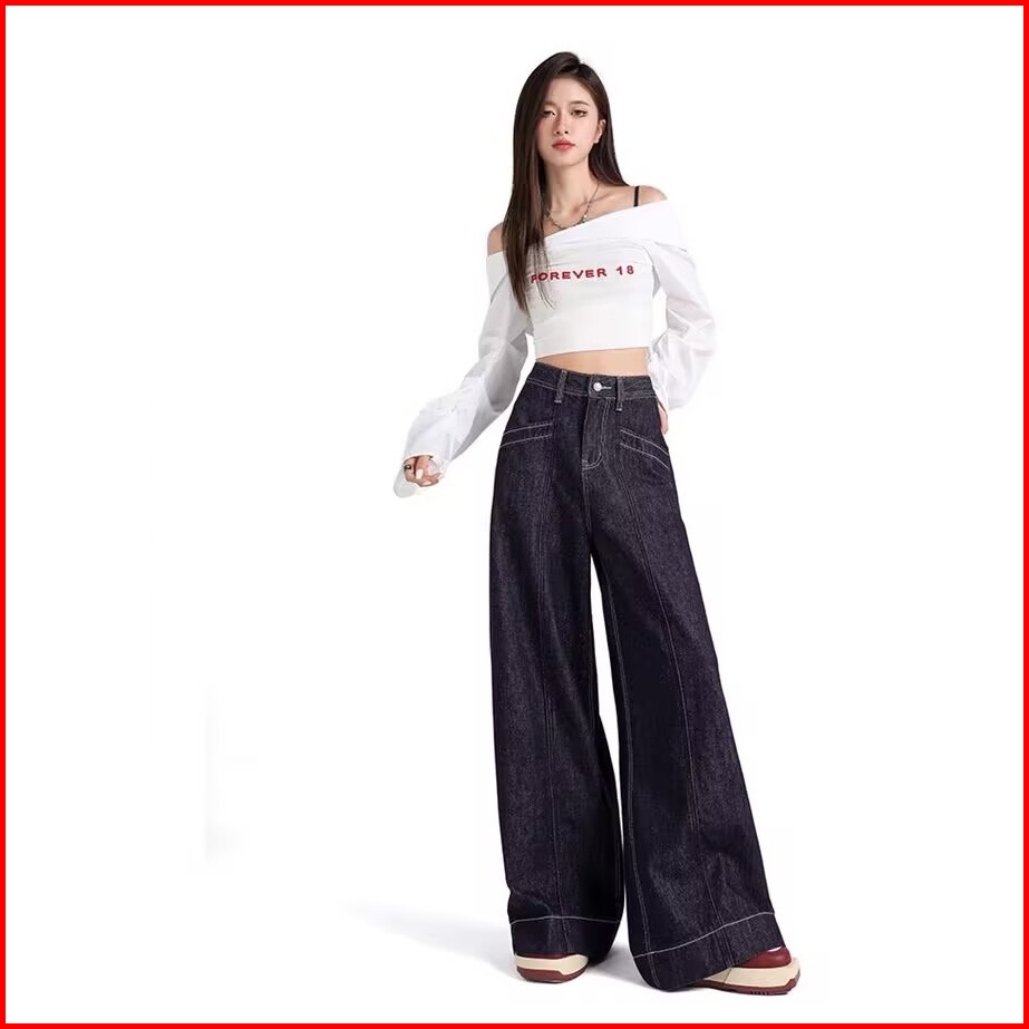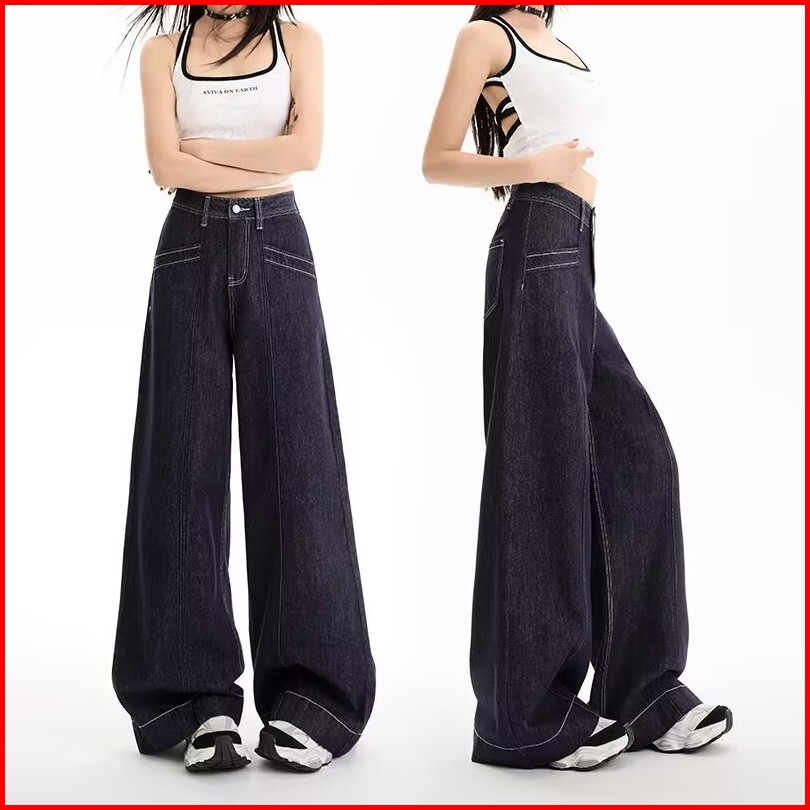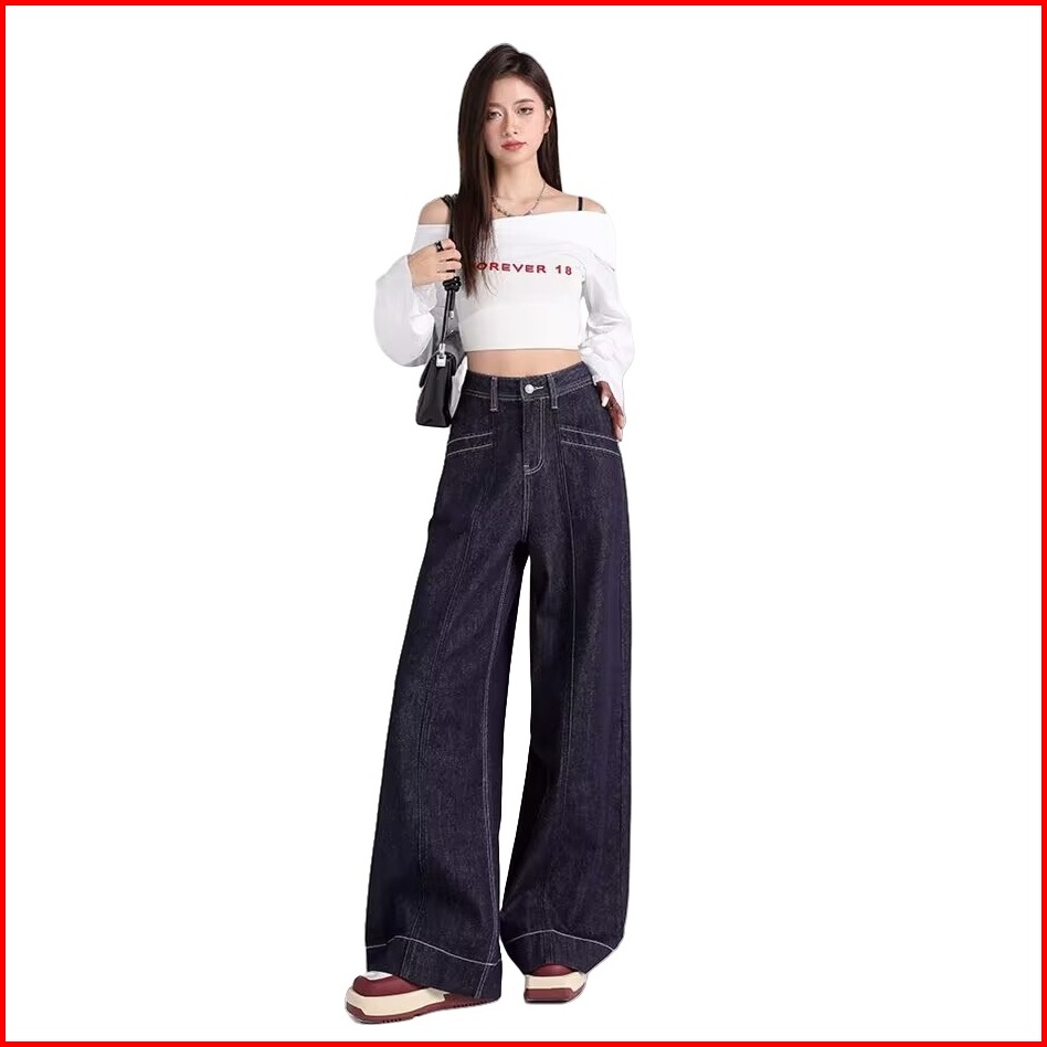Katermen Celana Jeans Wanita Berkaki Lebar-jeans Berpinggang Tinggi-celana Jins Biru- Jeans Wanita