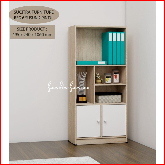 Lemari Rak Buku Serbaguna Rsg 6 Pintu Kayu