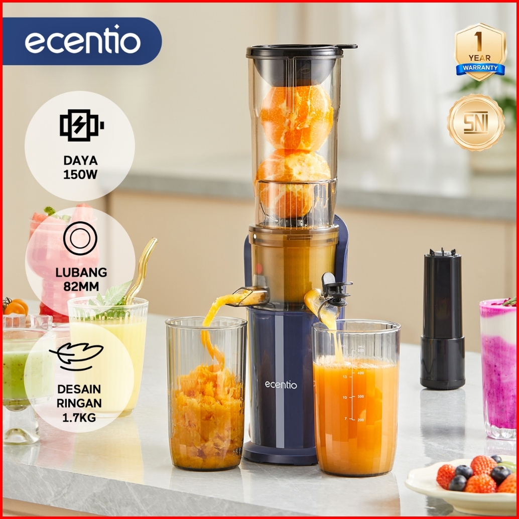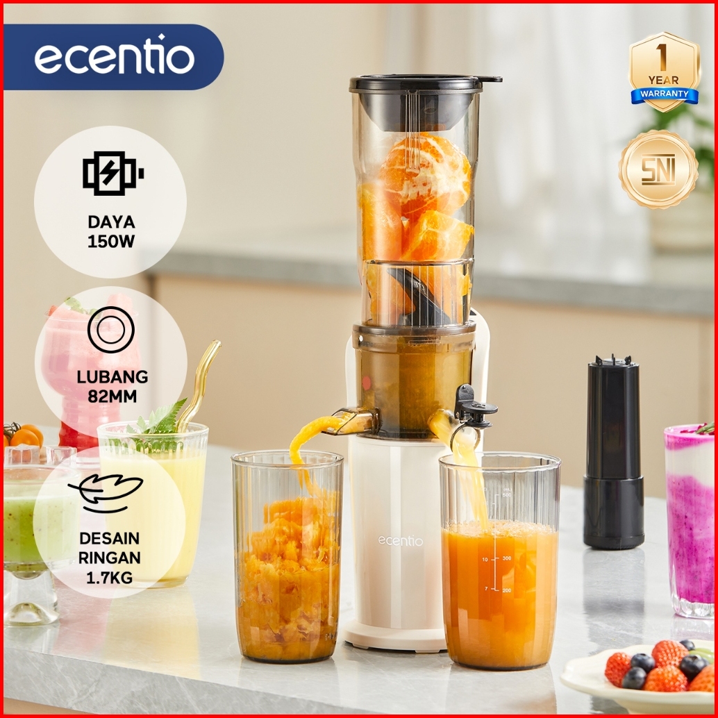Ecentio Slow Juicer Low Watt Extra Big Mouth 82mm Easy Juice Filter-free Low Watt Easy Clean Tanpa Potong Buah Multifung