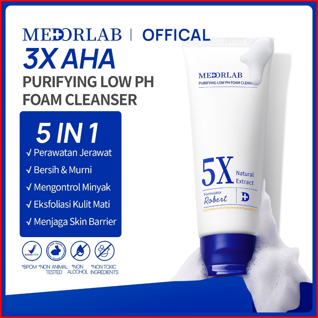 Medorlab Low Ph Foam Cleanser 3xaha 3x Amino Acid Niacinamide Gentle Mencerahkan Melembabkan