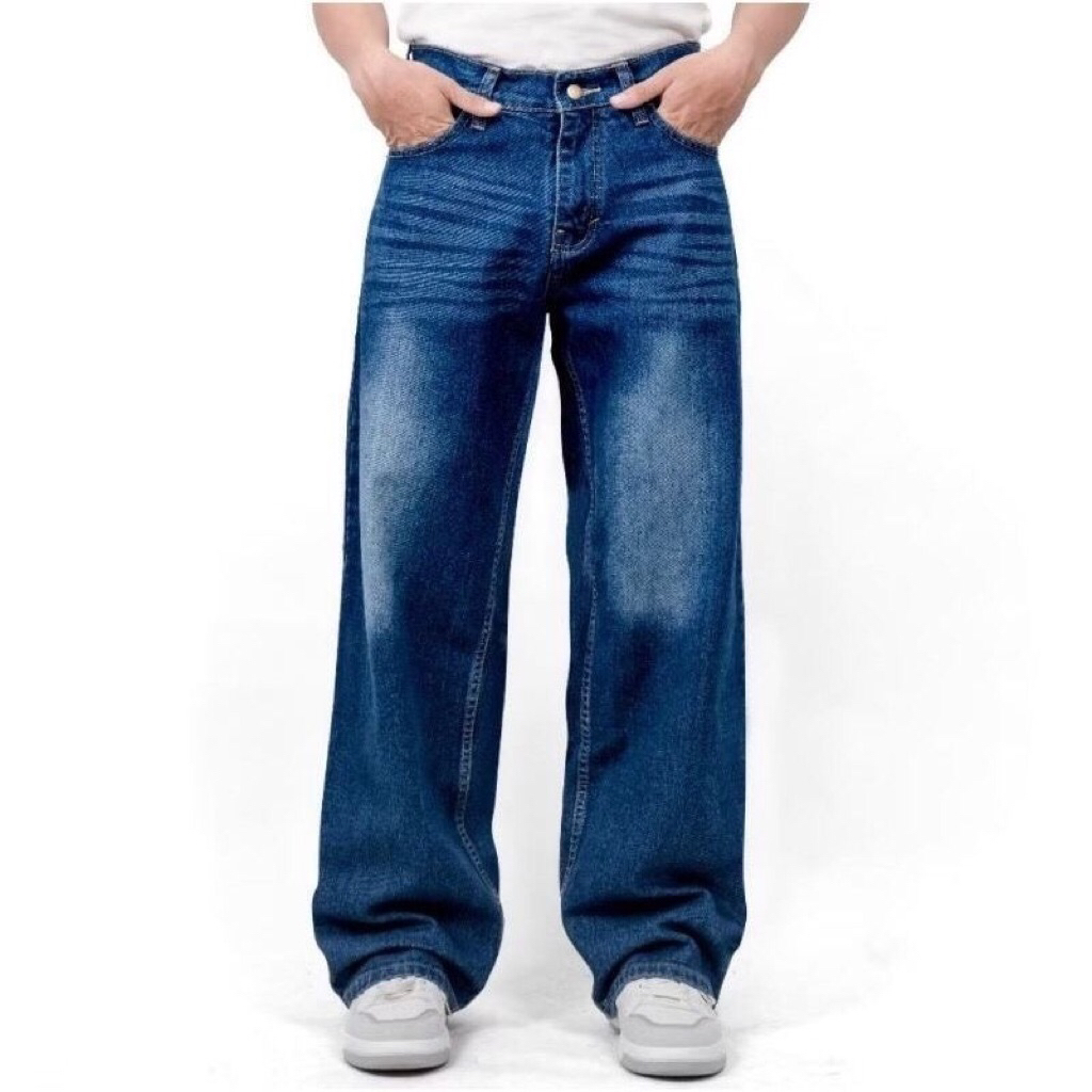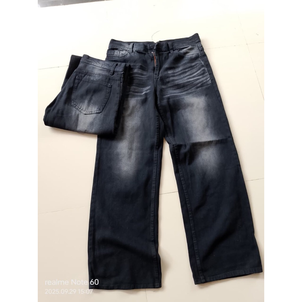 Celana Jeans Wisker Pria Unisex Wide Leg Lebar Gombrong Skena 27-34
